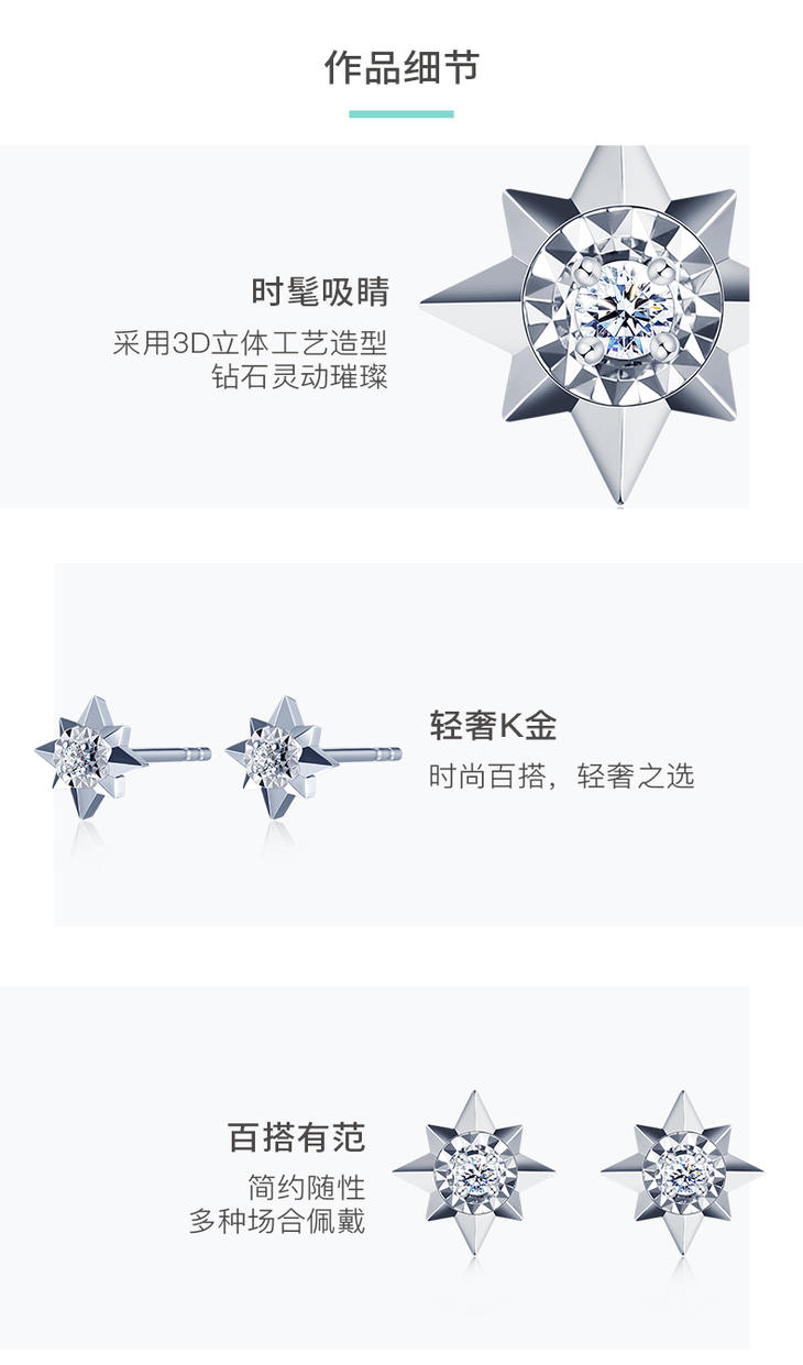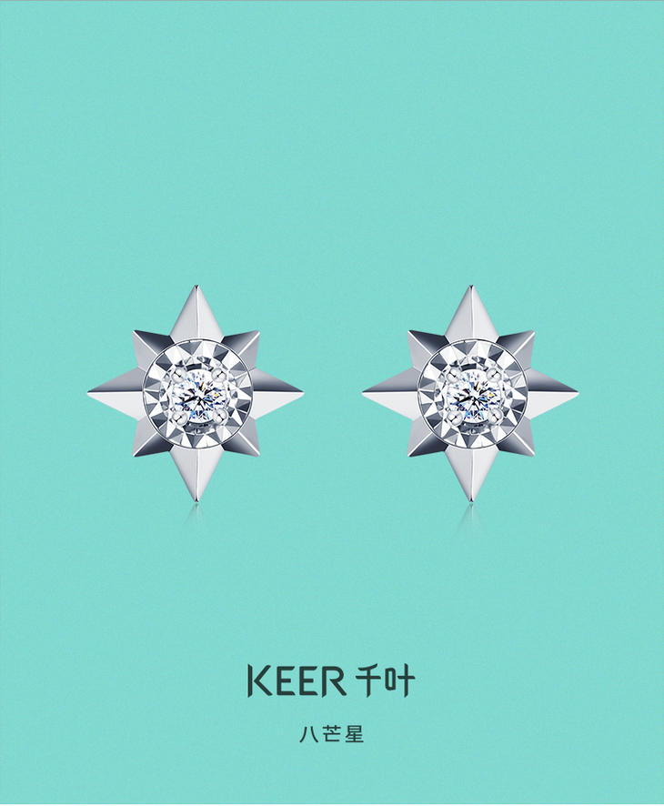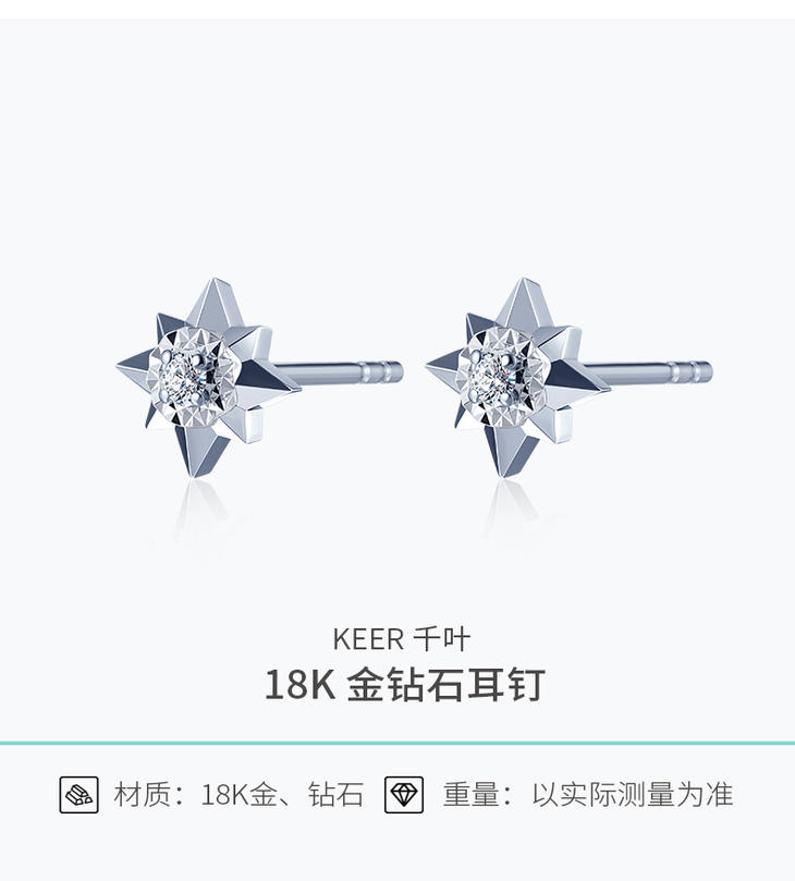千叶八芒星18k金钻石耳钉39900026662