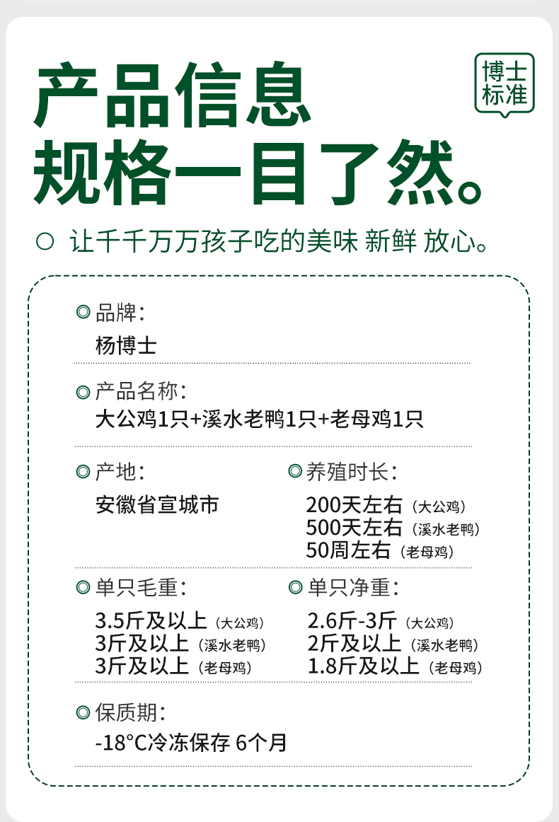 【杨博士自营 溪水老鸭1只+大公鸡1只+无抗老母鸡1只】 下单还有好礼相送