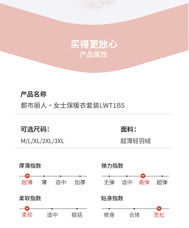 都市丽人保暖衣轻暖套装超薄轻羽绒薄女士保暖衣套装LWT1B5