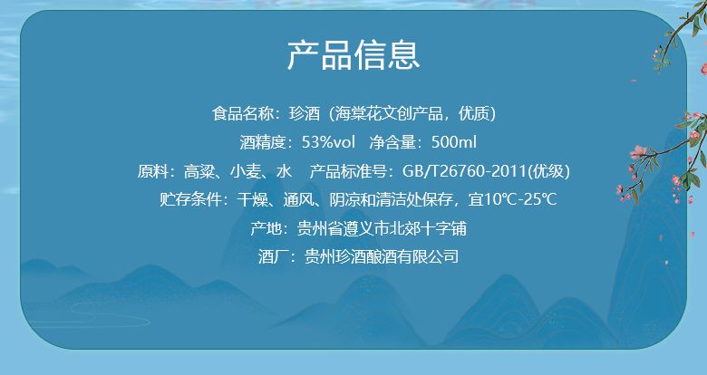 2023年珍酒海棠花 53度酱香型白酒 整箱500ml*6瓶包邮