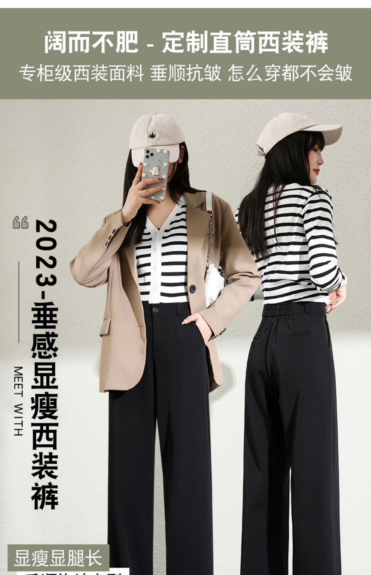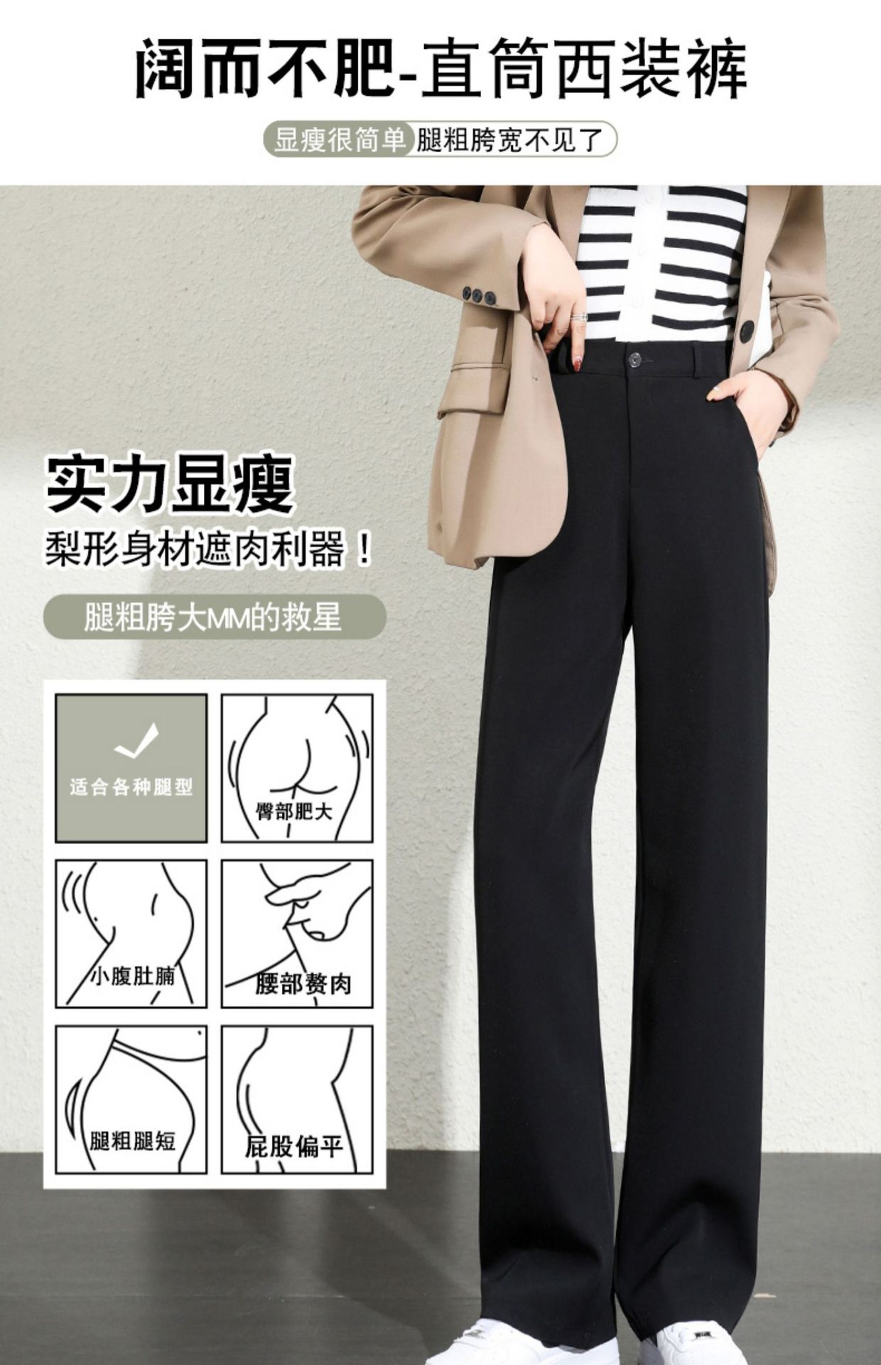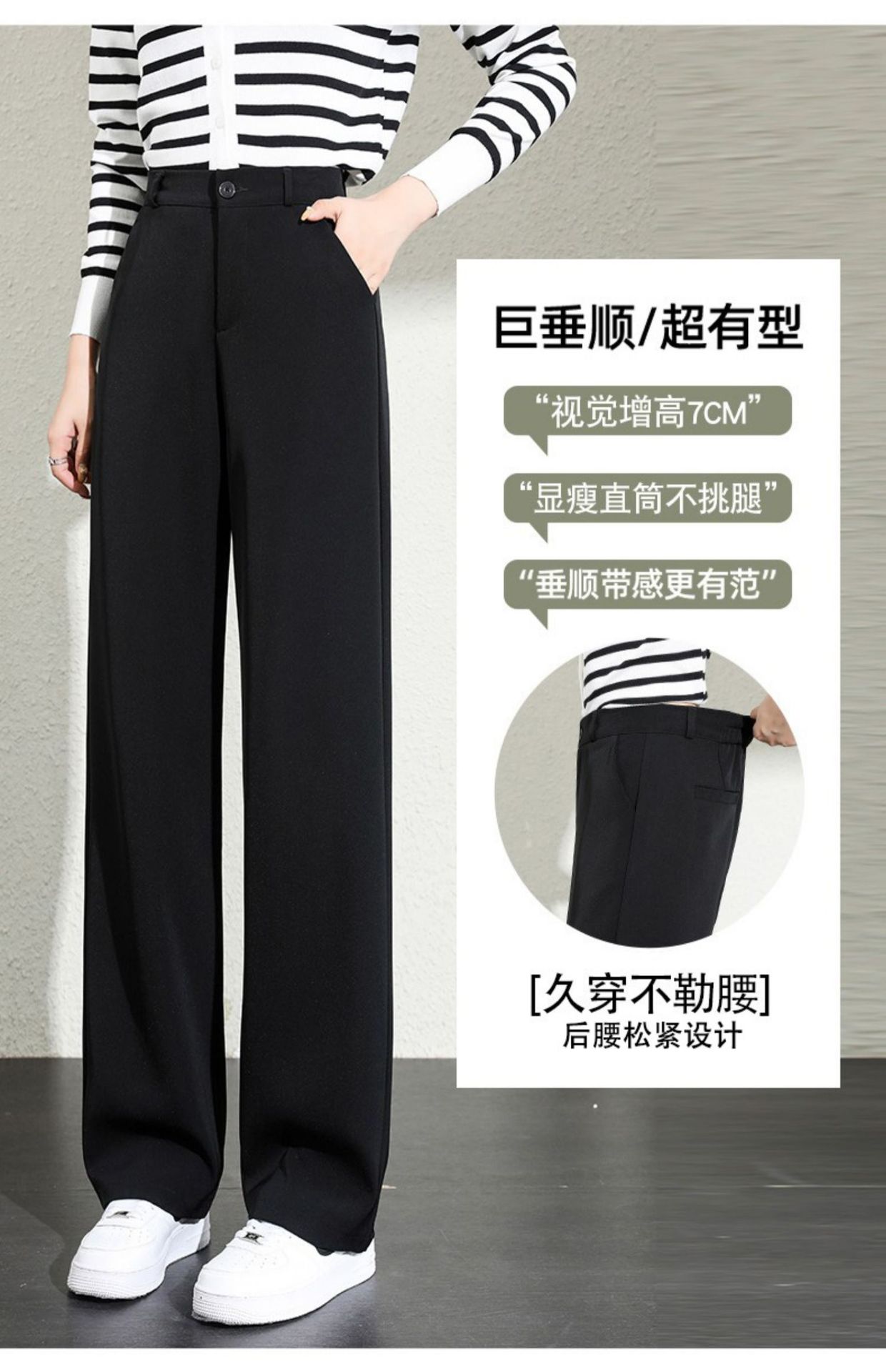 「垂感·有型!视觉大长腿」西装裤黑色阔腿裤女高腰垂感春季窄版直筒裤小个子宽松显瘦休闲裤