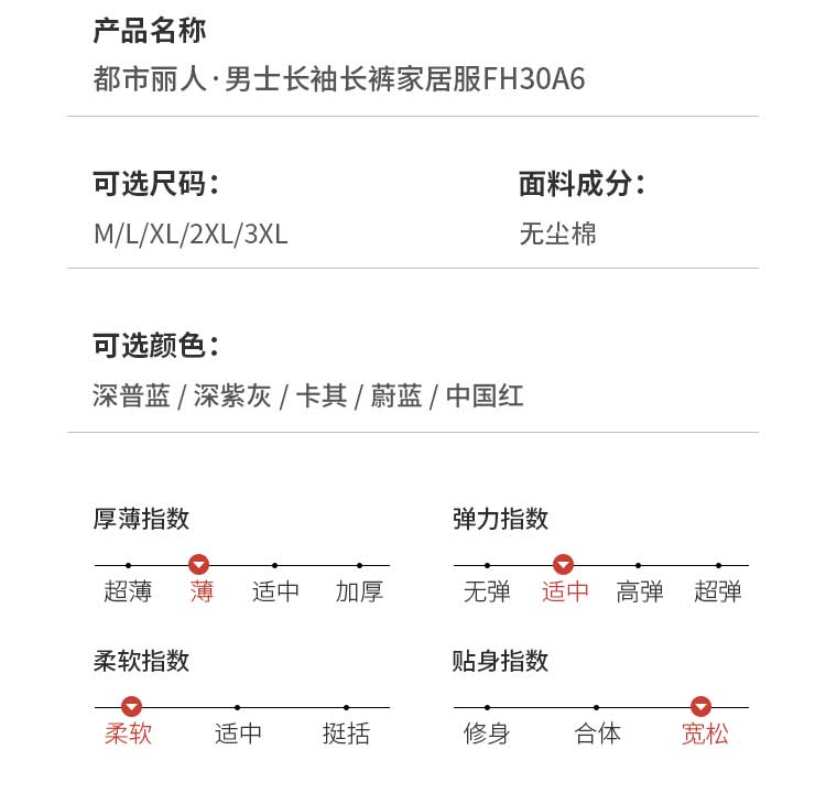 都市丽人都市锋尚睡衣亲情蜜语长袖保暖面料薄男士保暖面料套装FHT0B6