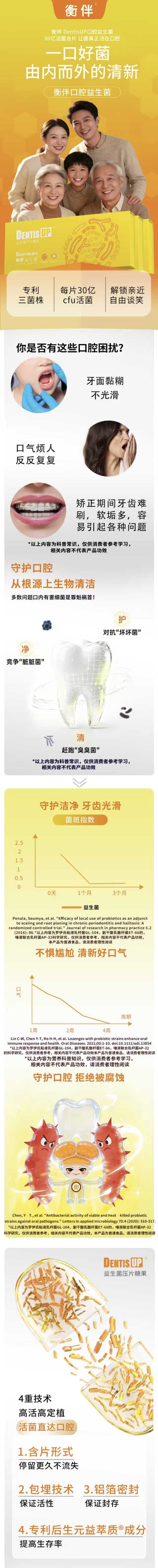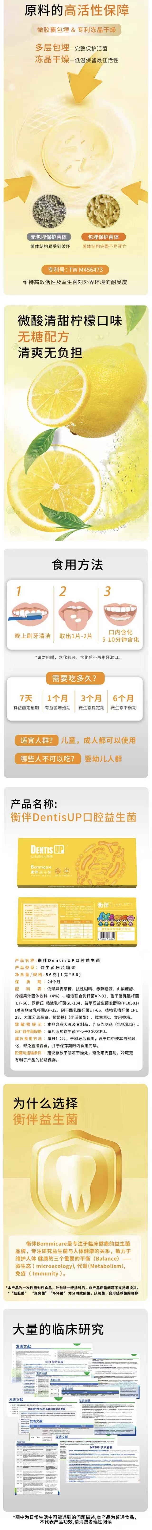 衡伴DentisUP儿童/成人日常维护益生菌(柠檬味)含片 56片/盒 每片至少含有30亿CFU益生菌 (有效期至2027年9月25日)