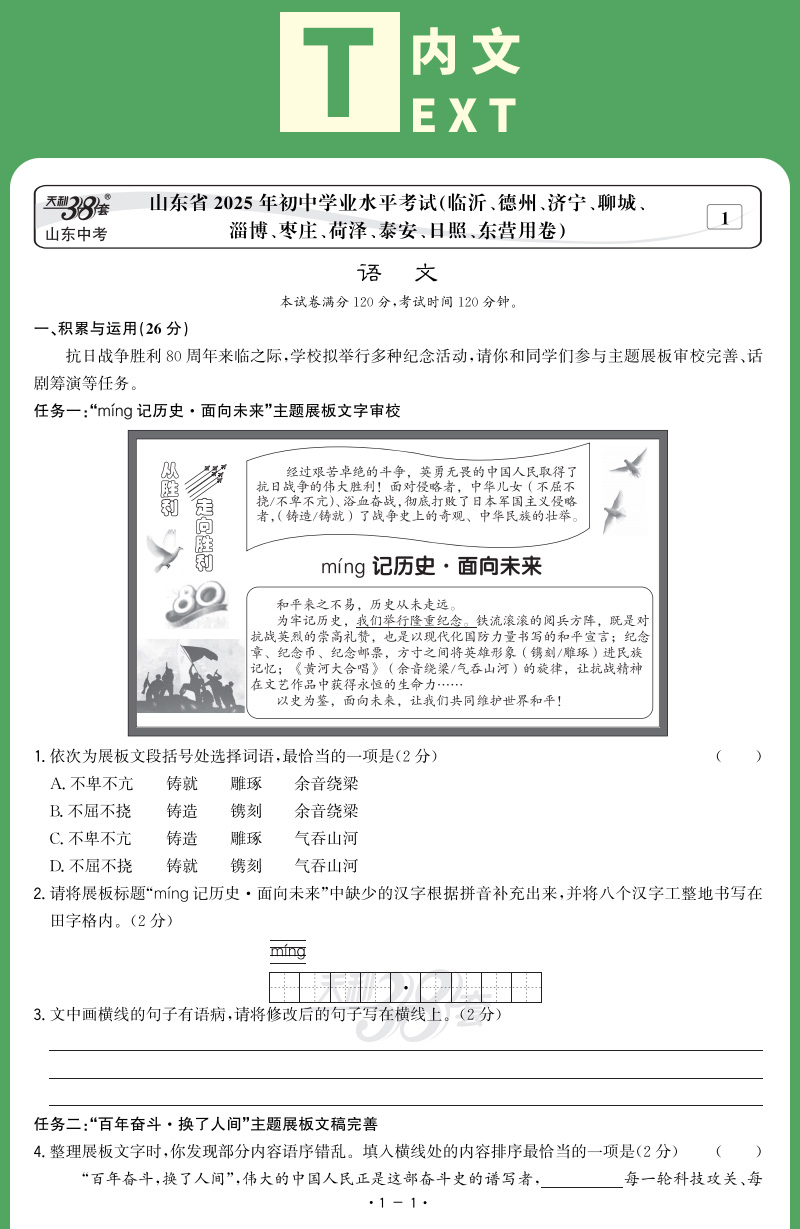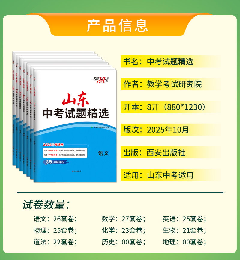 【山东专用】2026中考天利38套山东中考试题精选山东省16地市中考历年真题试卷全套语文数学英语物理化学生物政治历史地理真题卷