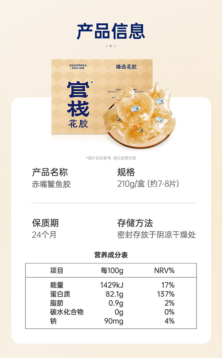 【私信门店顾问享专属折扣】官栈7A赤嘴鱼胶210g深海干花胶赤嘴鳘鱼胶高蛋白女性营养滋补送礼干花胶礼盒