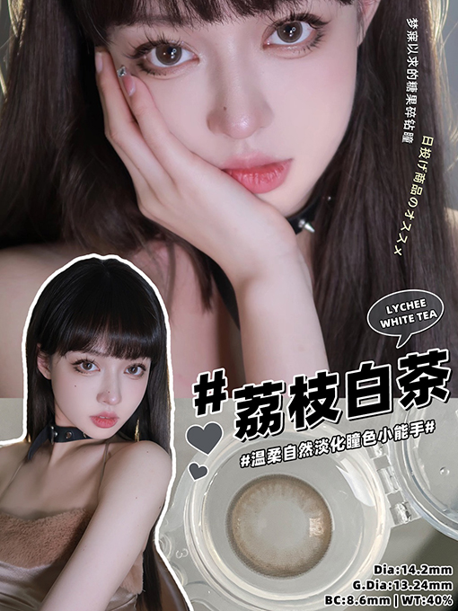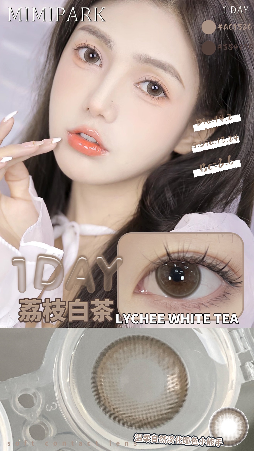 MIMIPARK 荔枝白茶 日抛 十片 14.2mm 参考着色 13.24mm 基弧 8.6 含水 40% 新锐国货