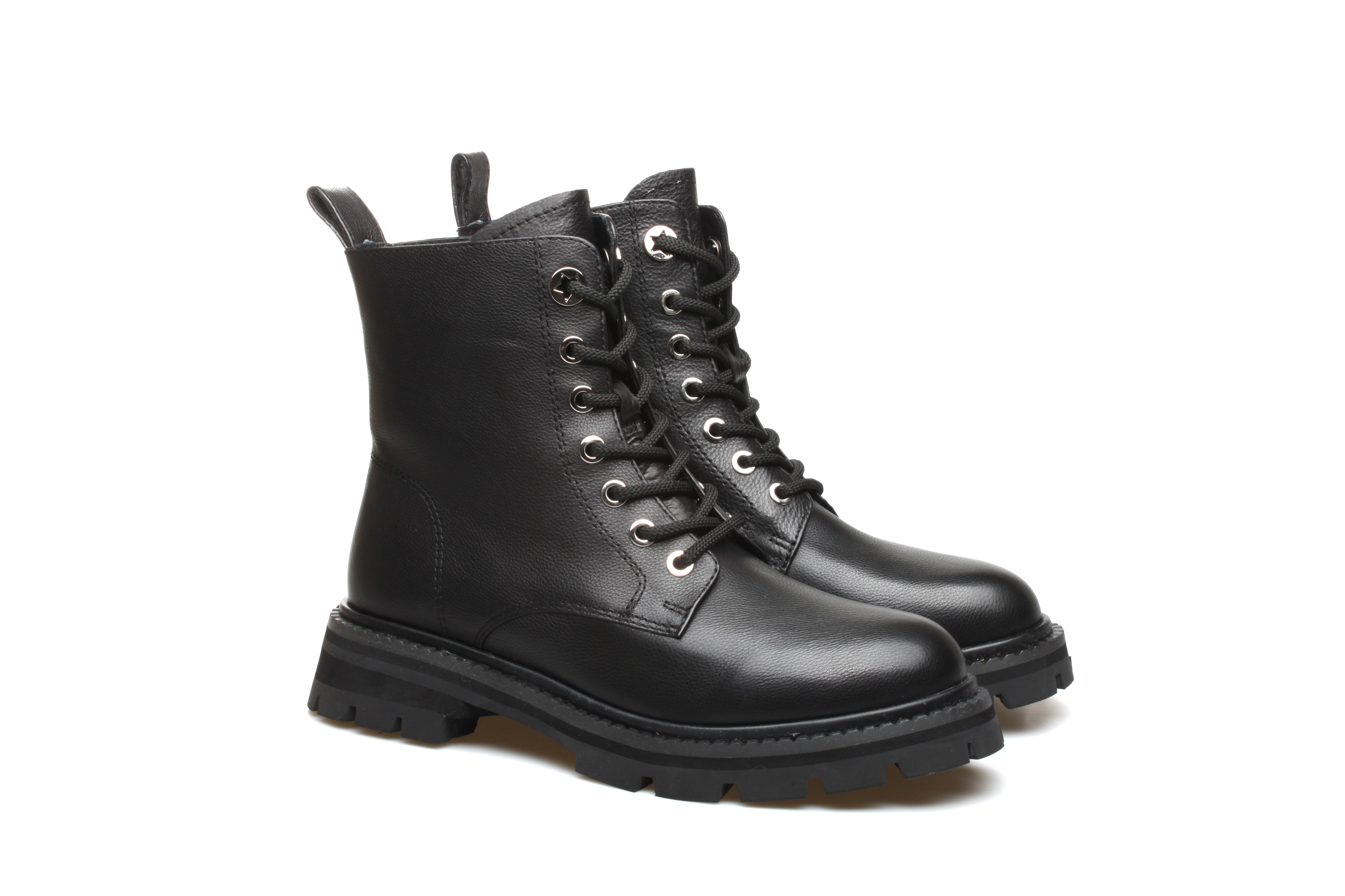 豪麟名鞋奥莱迪嘉女装胎牛皮帅性马丁靴DJYZA12WN041黑色 原价2660元