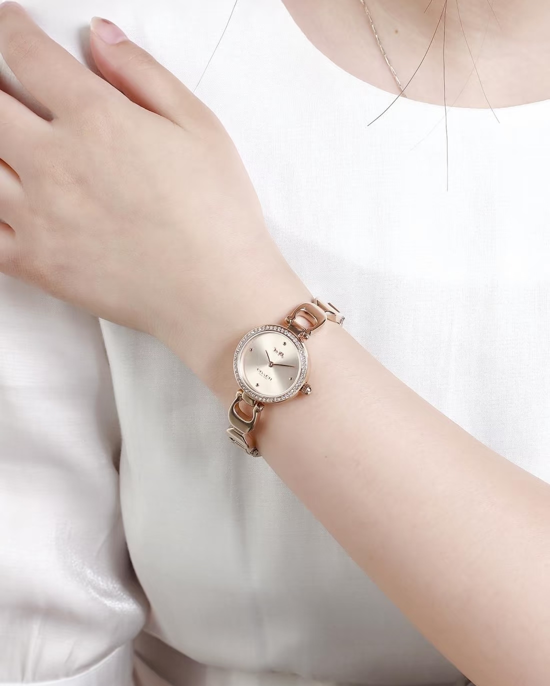 镶钻点缀: 部分款式在表圈或时标处镶嵌了人造水晶(施华洛世奇元素),360度闪耀,既“bling bling”感,又不会显得过于俗气,恰到好处地提升了贵气。