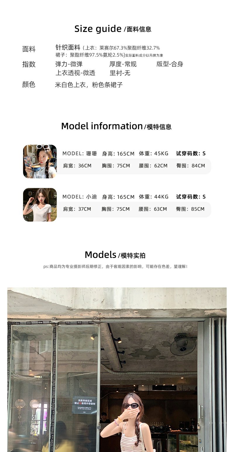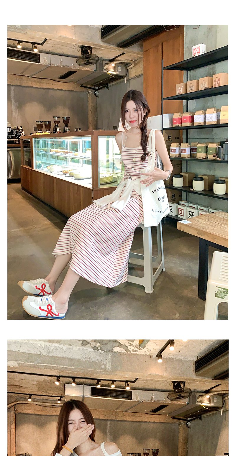 <曾小咸推荐>甜美条纹简约修身吊带连衣裙