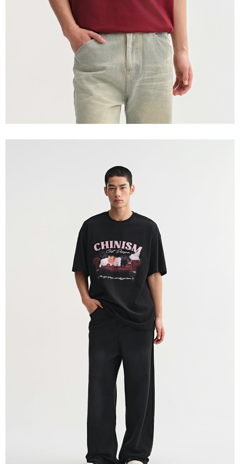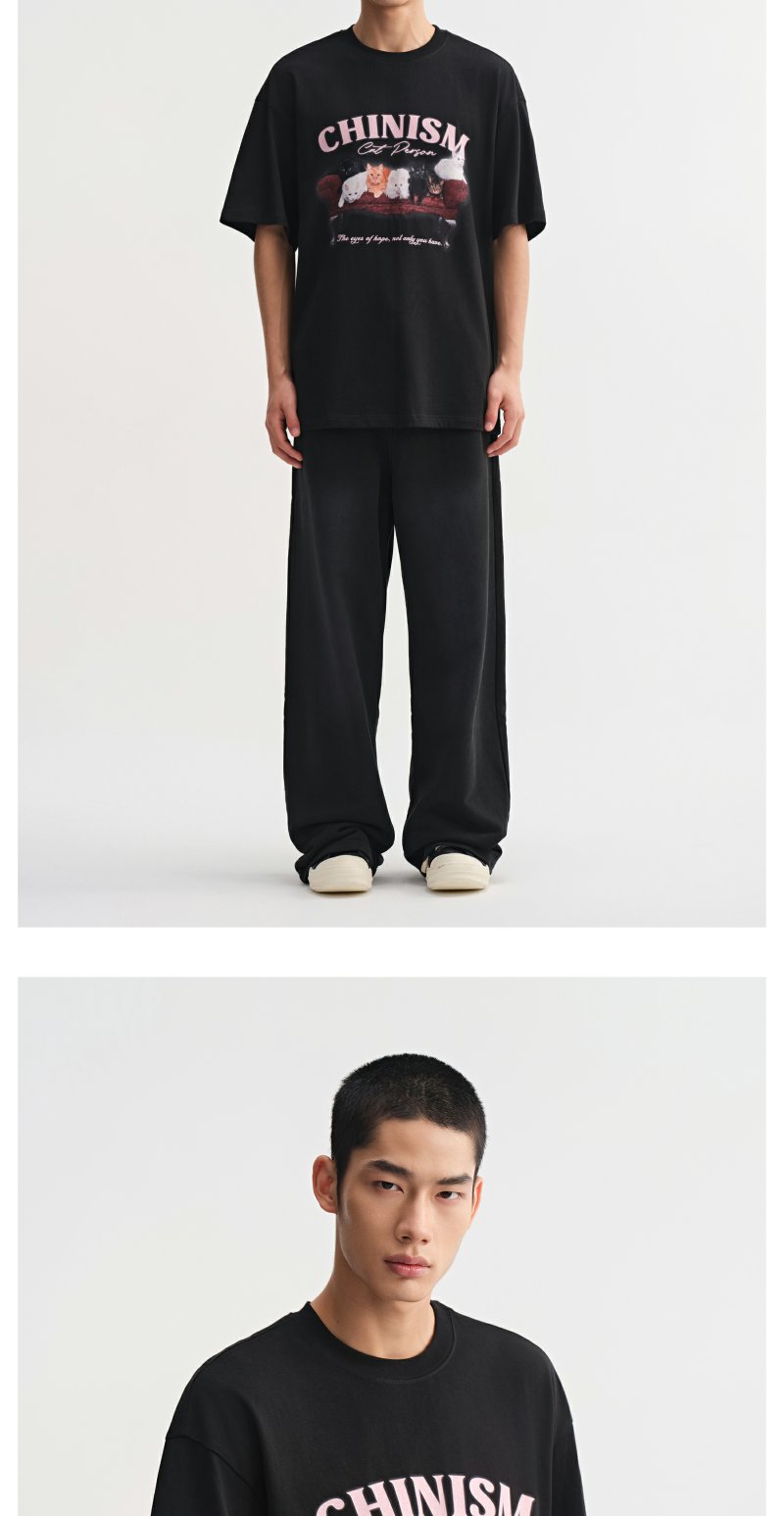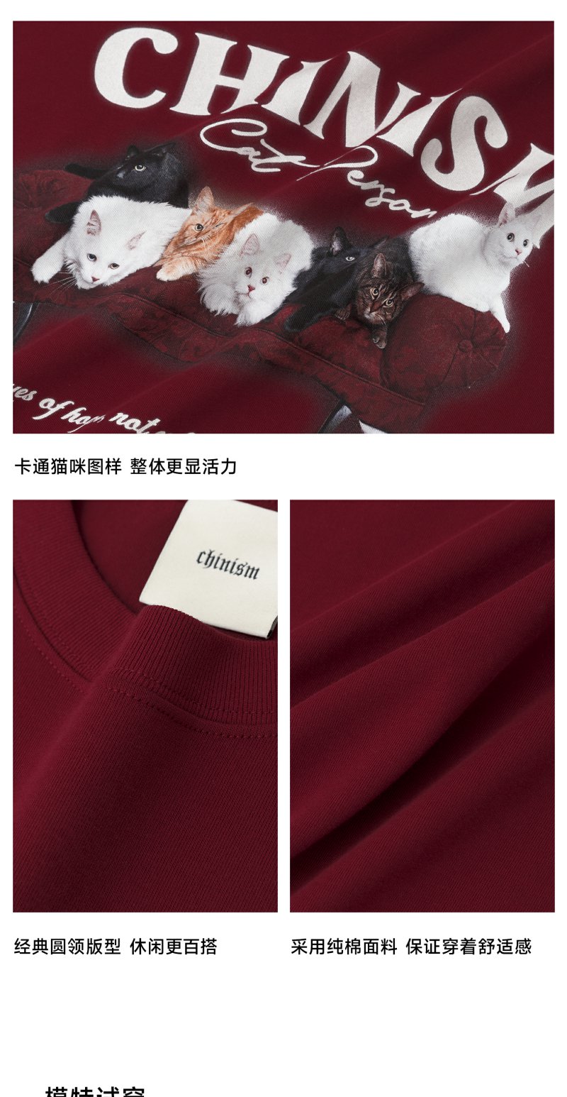 CHINISM赤尘 猫咪印花短袖T恤男新款美式亲肤纯棉半袖男士上衣