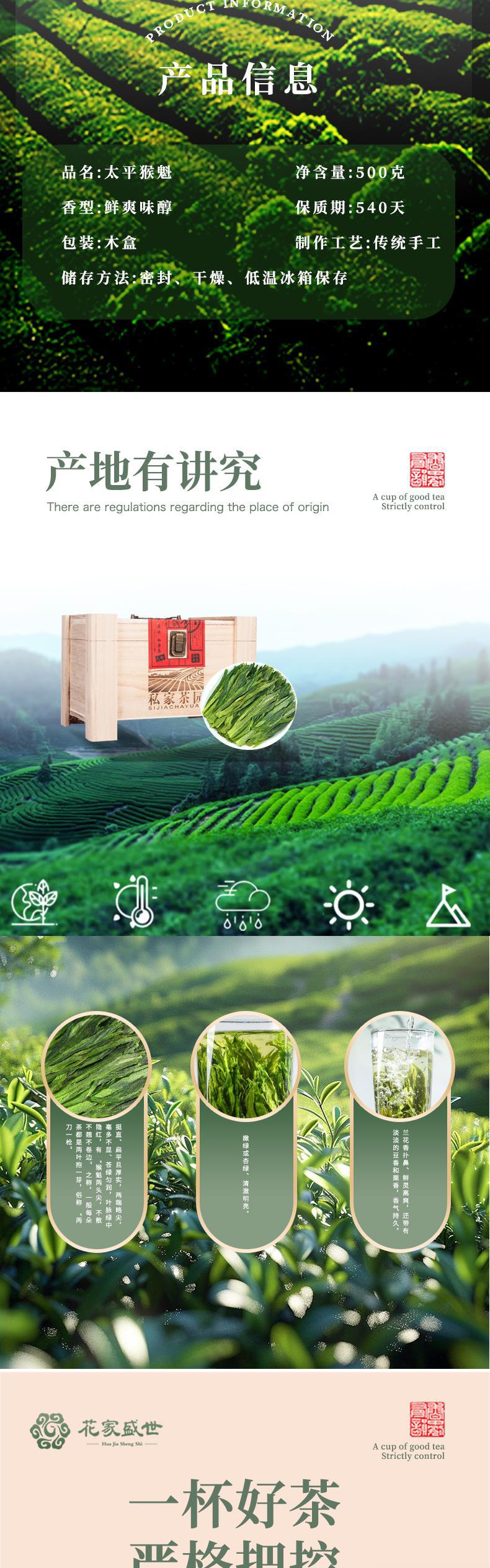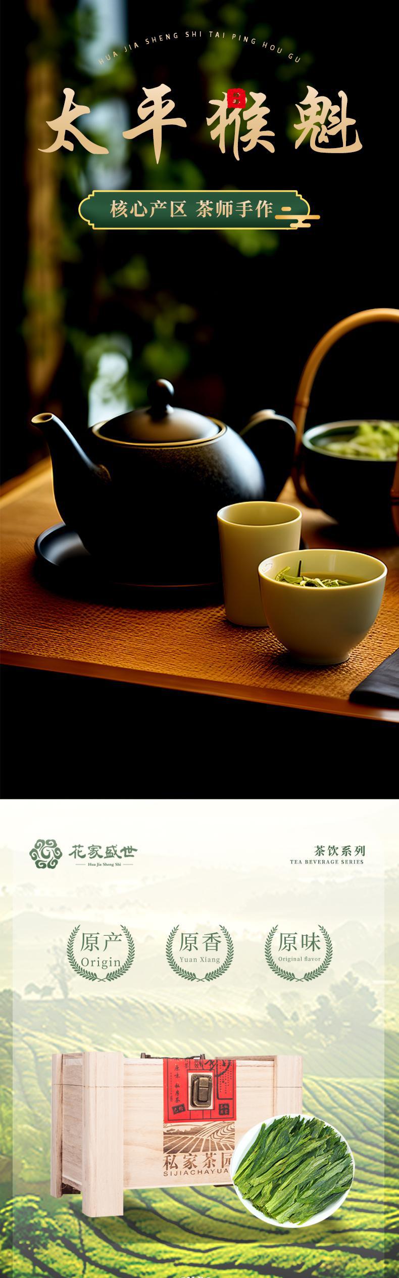 花家盛世 私家茶园太平猴魁500g绿茶红茶新鲜健康美味 HJSS-BSJCY-TPHK-500
