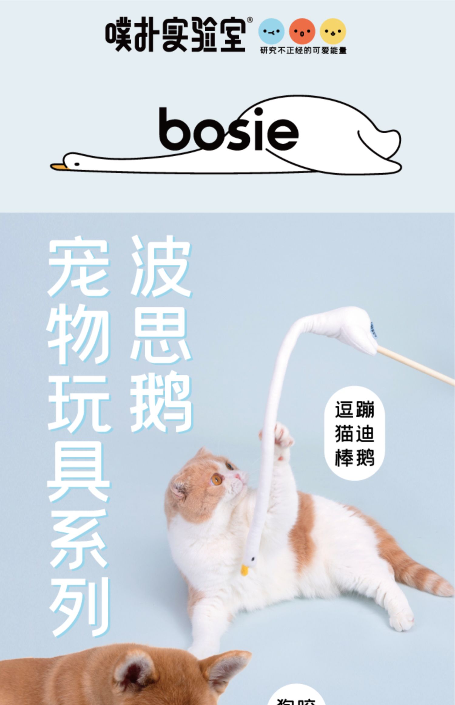 噗扑实验室bosie联名波思鹅宠物玩具猫玩具自嗨逗猫棒狗发声玩具