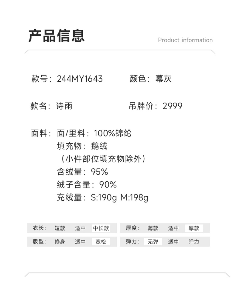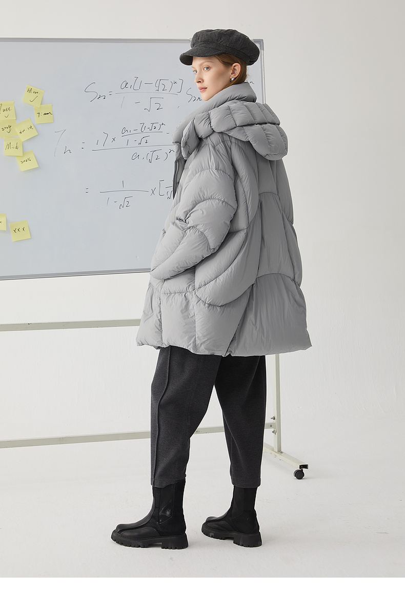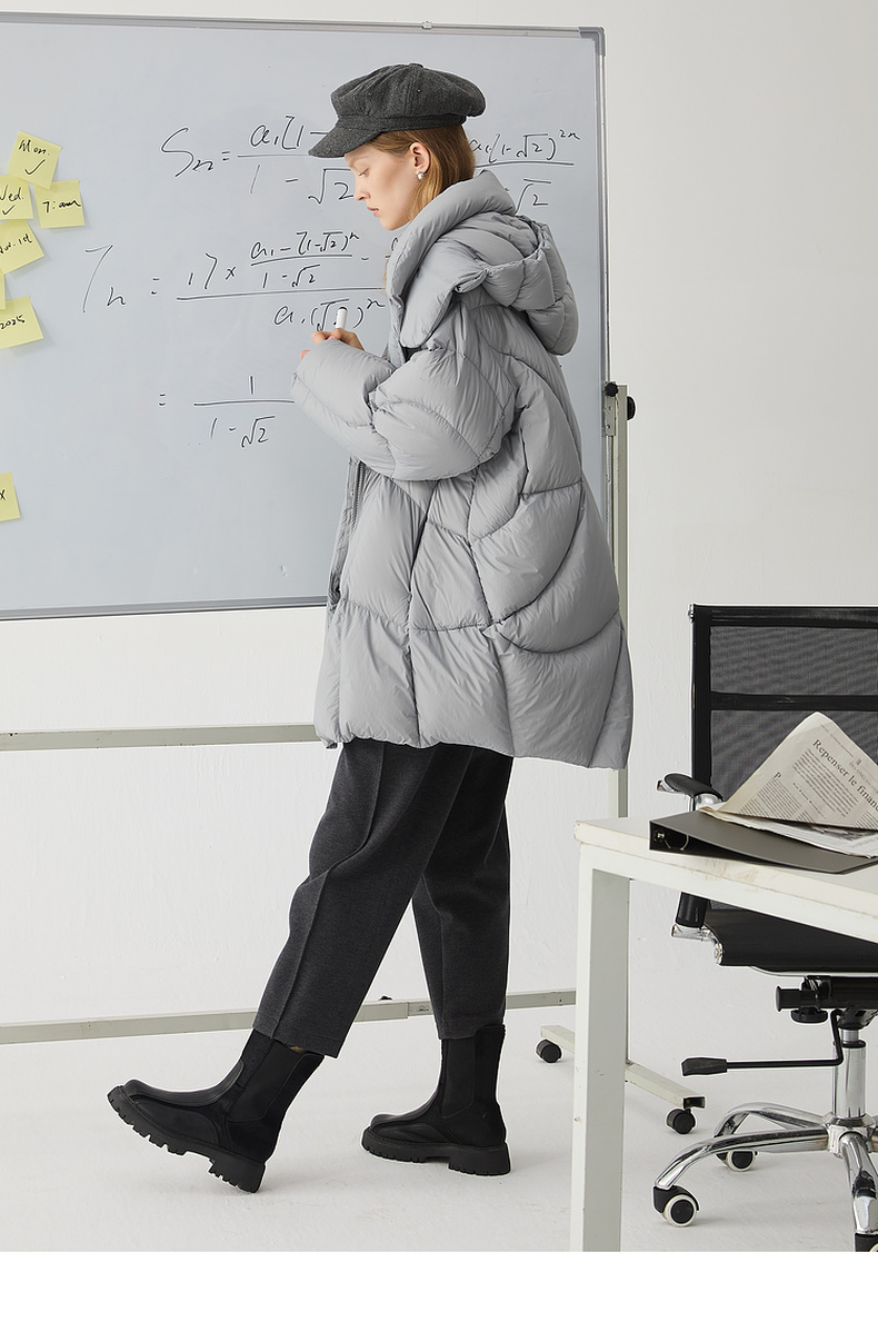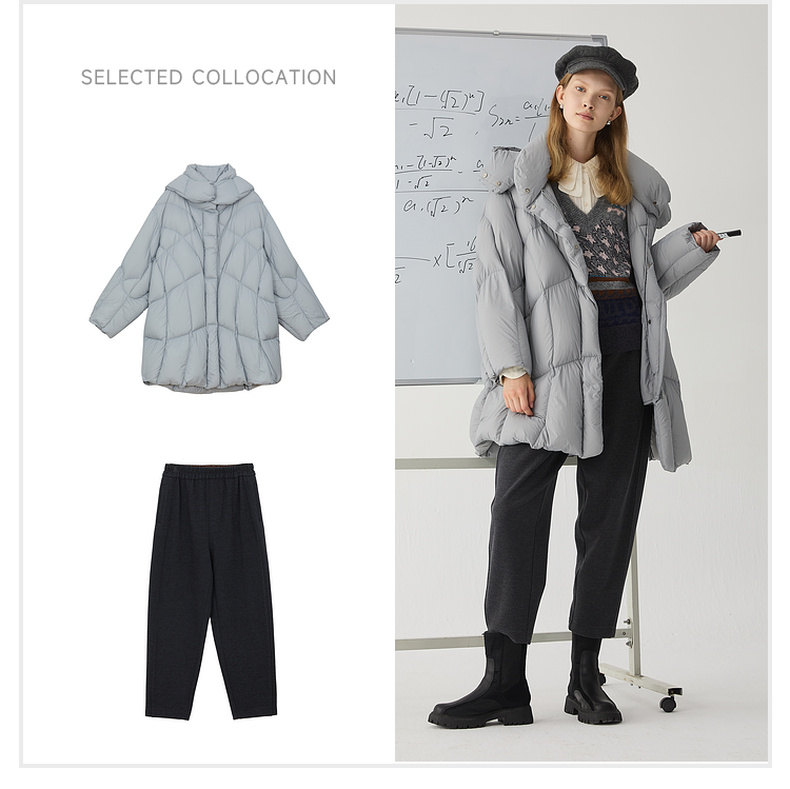 谜底中长款羽绒服女2024冬新品简约时尚宽松加厚鹅绒服244MY1643