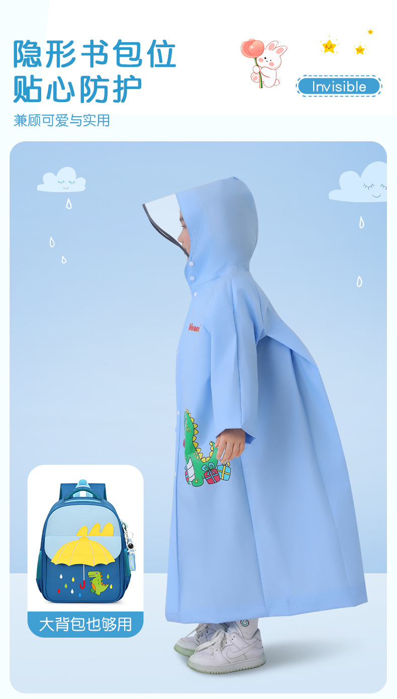 【上学专用❗️卡通萌趣儿童雨衣】多层防渗水保障,折叠大书包位,面料很安全,妈妈放心选,男童女童女孩小学生幼儿园上学,加大加厚全身一体宝宝卡通雨披L