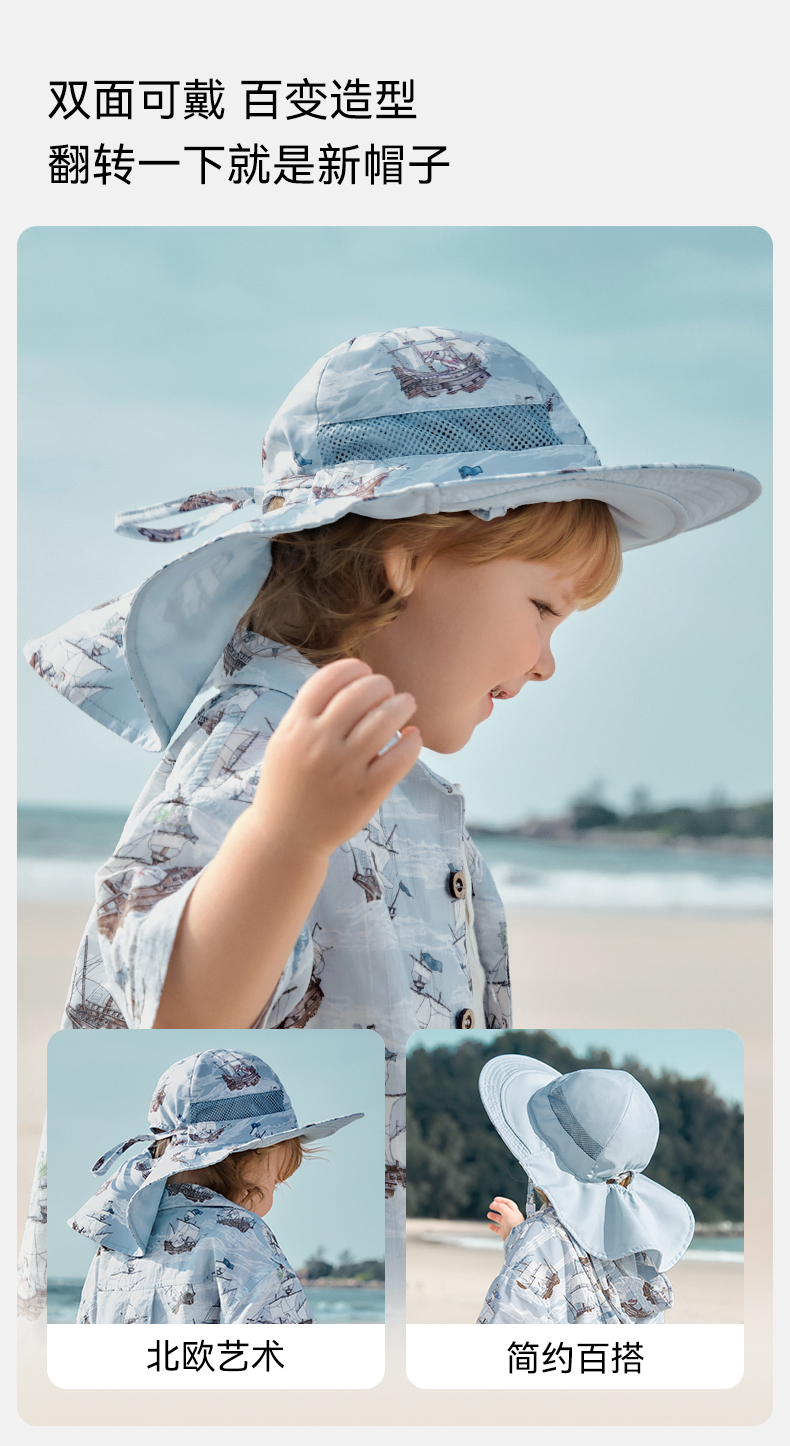 【婴童防晒】EMXEE嫚熙童装双面防晒帽