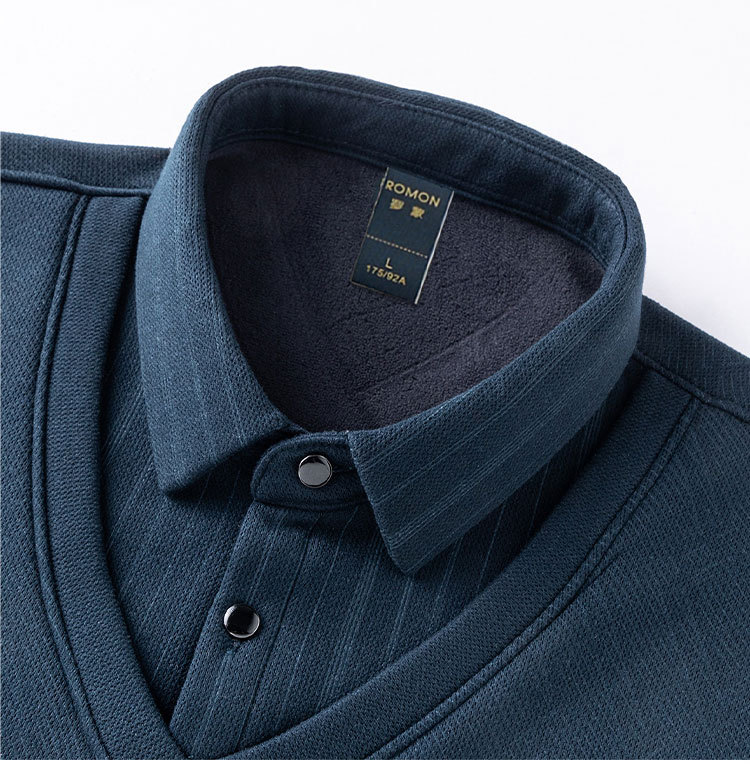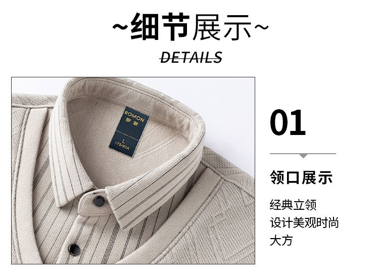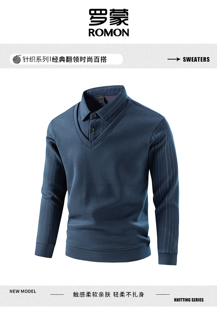 【一件过冬】罗蒙加绒衬衫男士假两件针织衫毛衣秋冬加绒衬衣