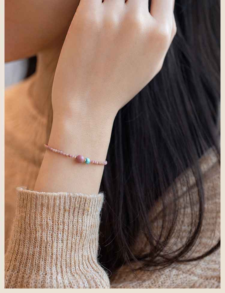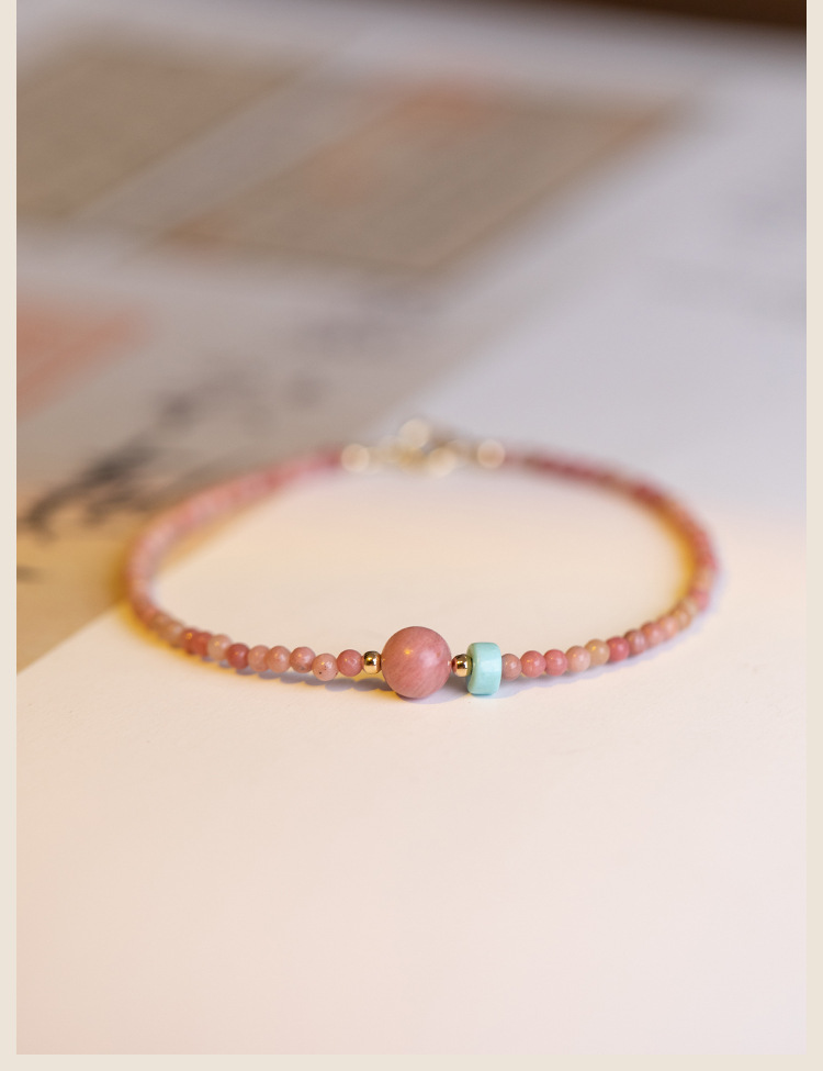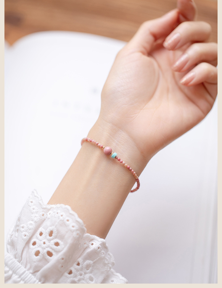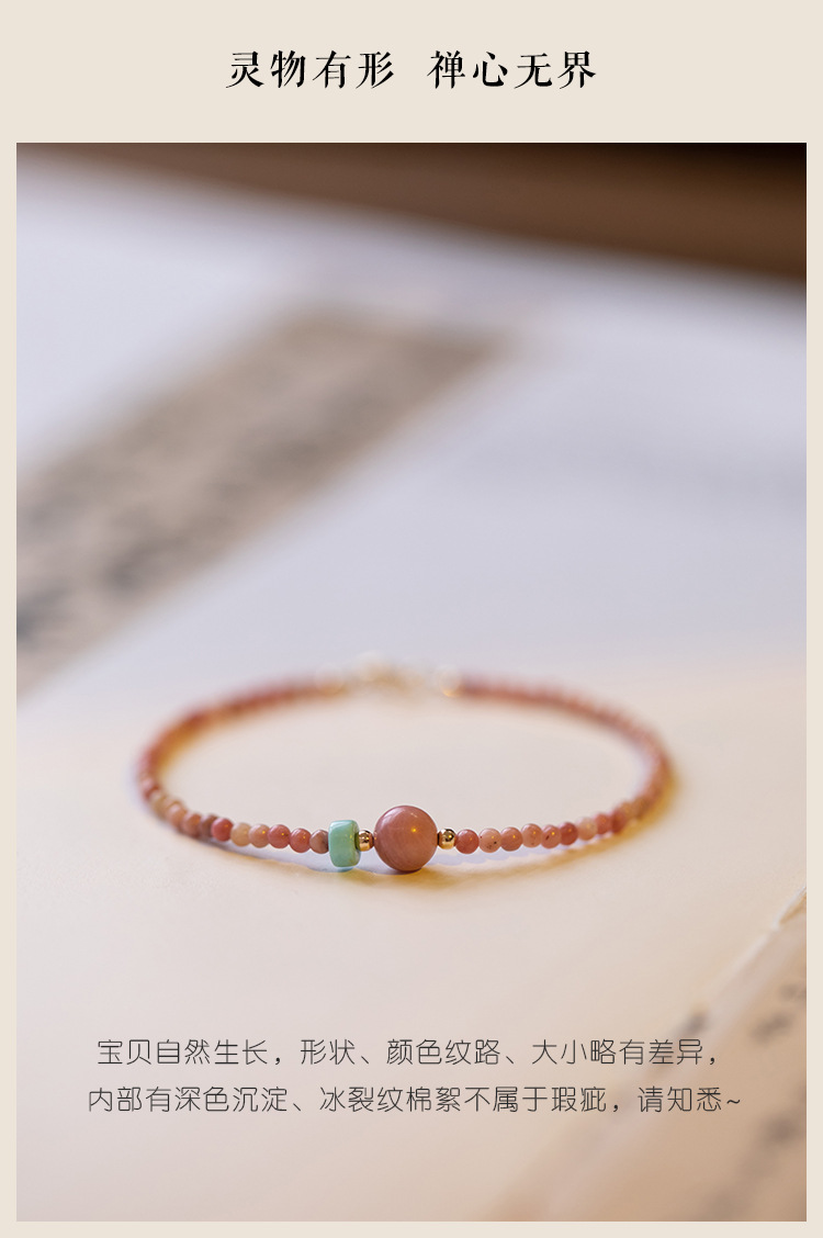 「红纹蔷薇」巴度天然红纹石手链 女招蔷薇辉石桃花细手串送闺蜜生日礼物走心时尚饰品
