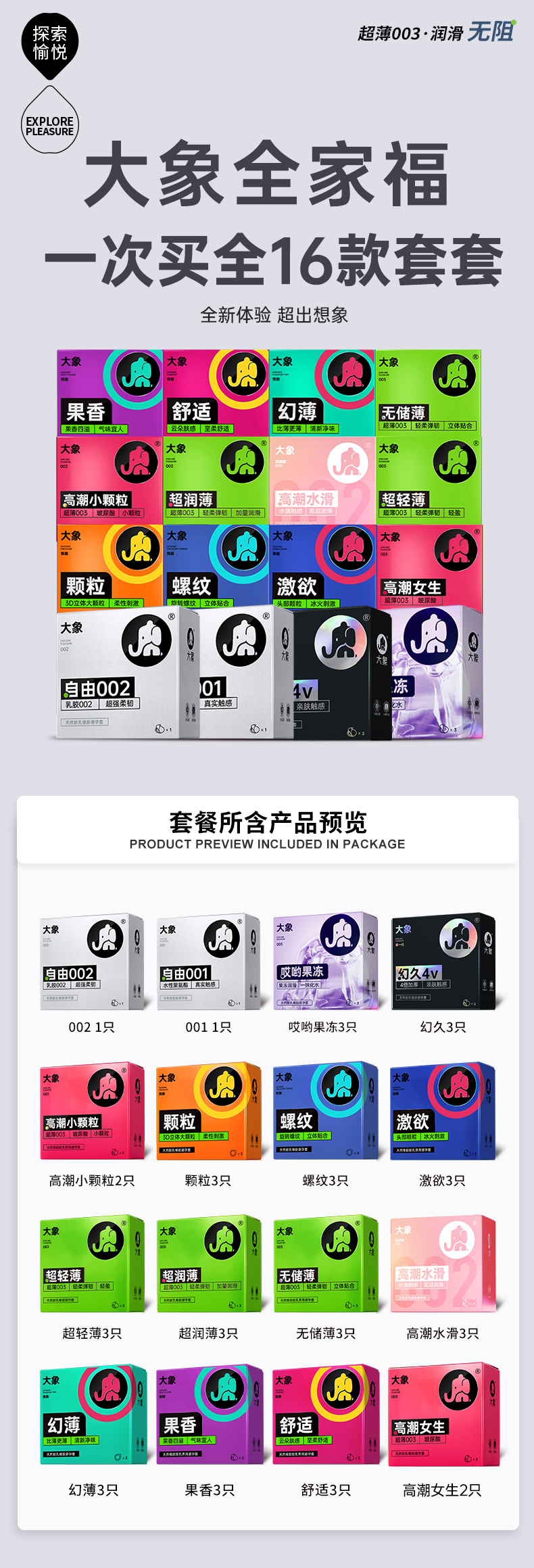 【双旦狂欢·钜惠来袭】 大象全家福组合 一次买齐16款套套(42只)