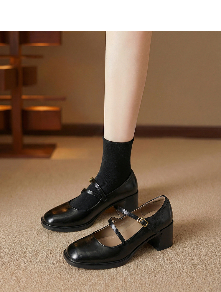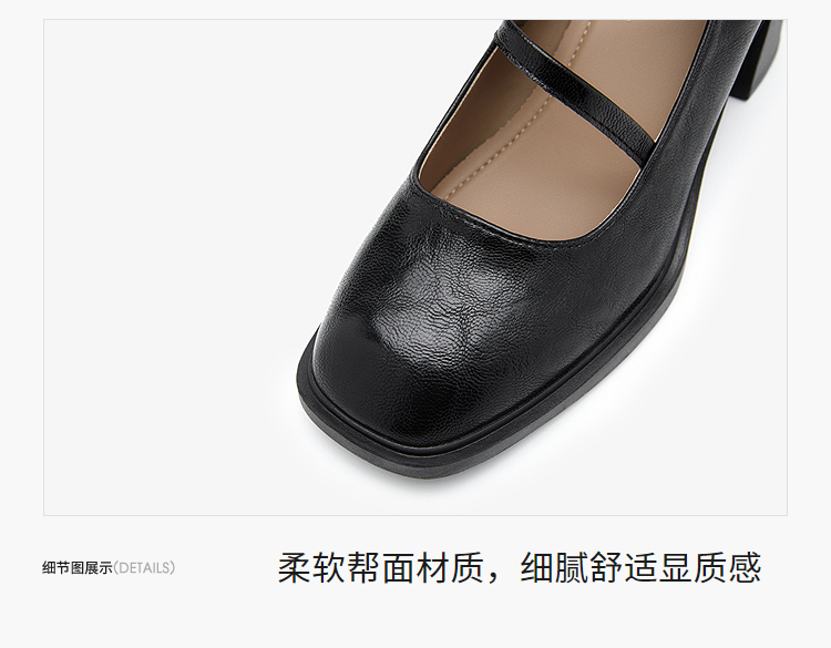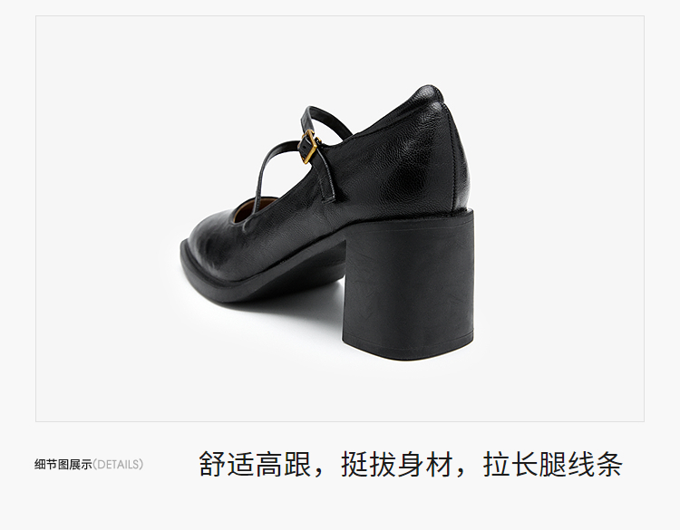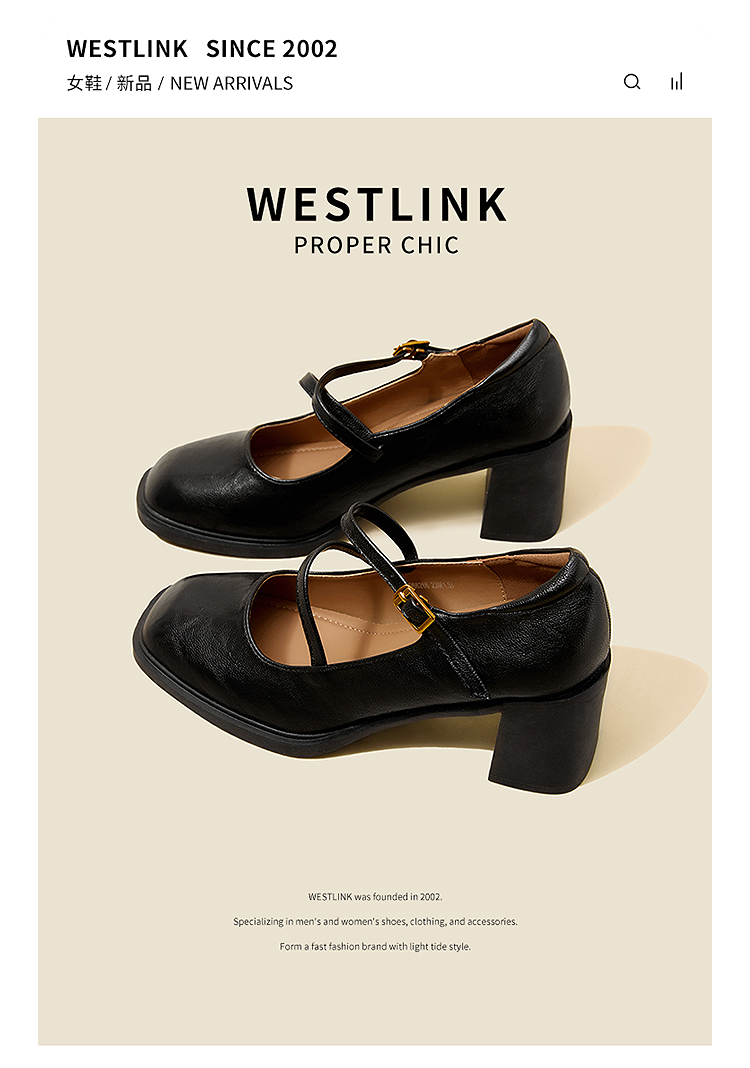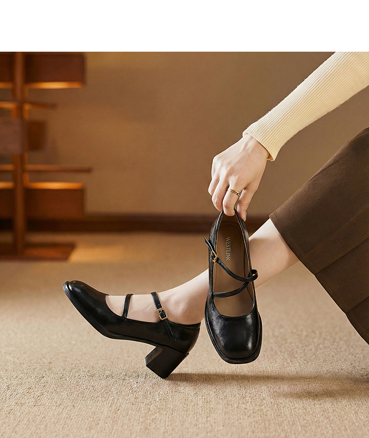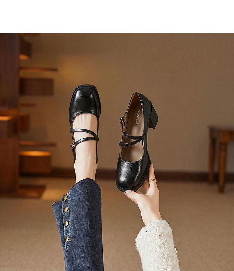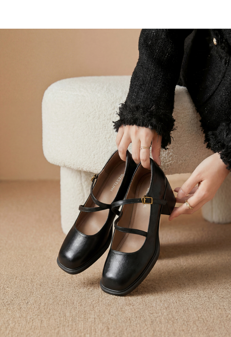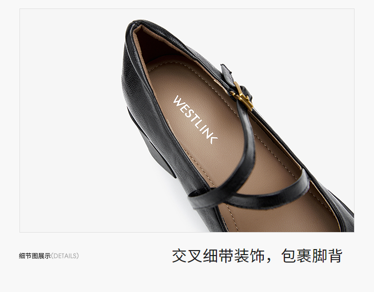 西遇浅口粗跟玛丽珍女鞋2026新款春季交叉细带皮鞋法式舒适单鞋子V0166266