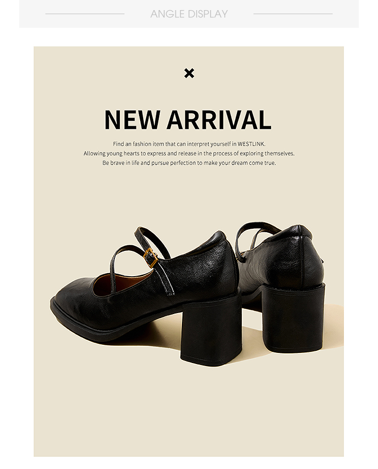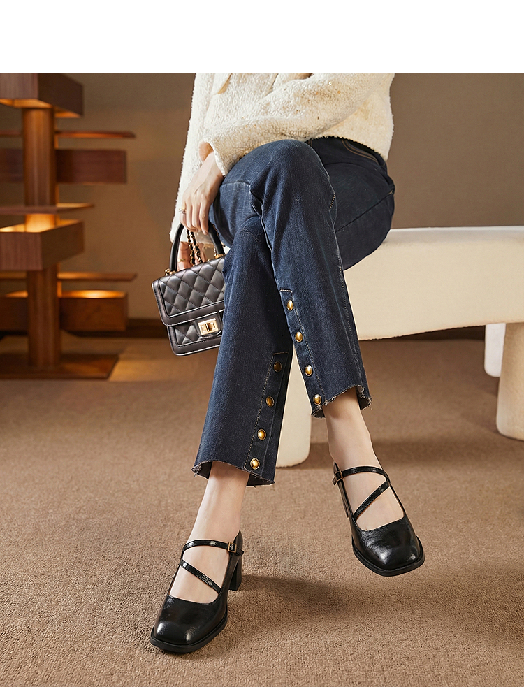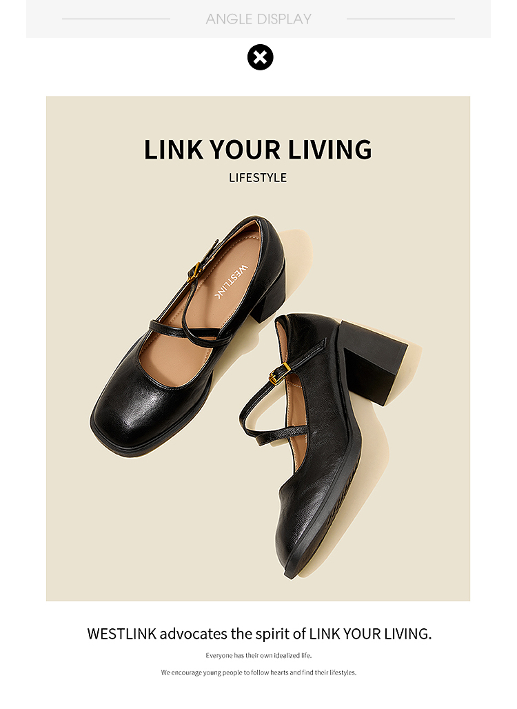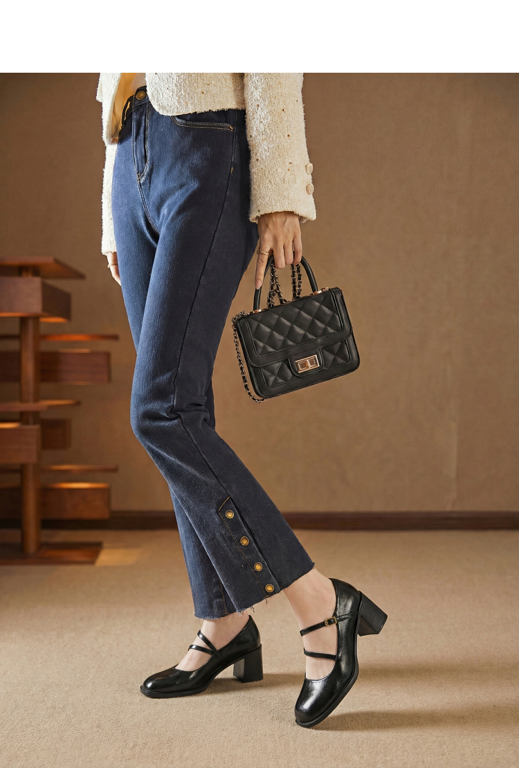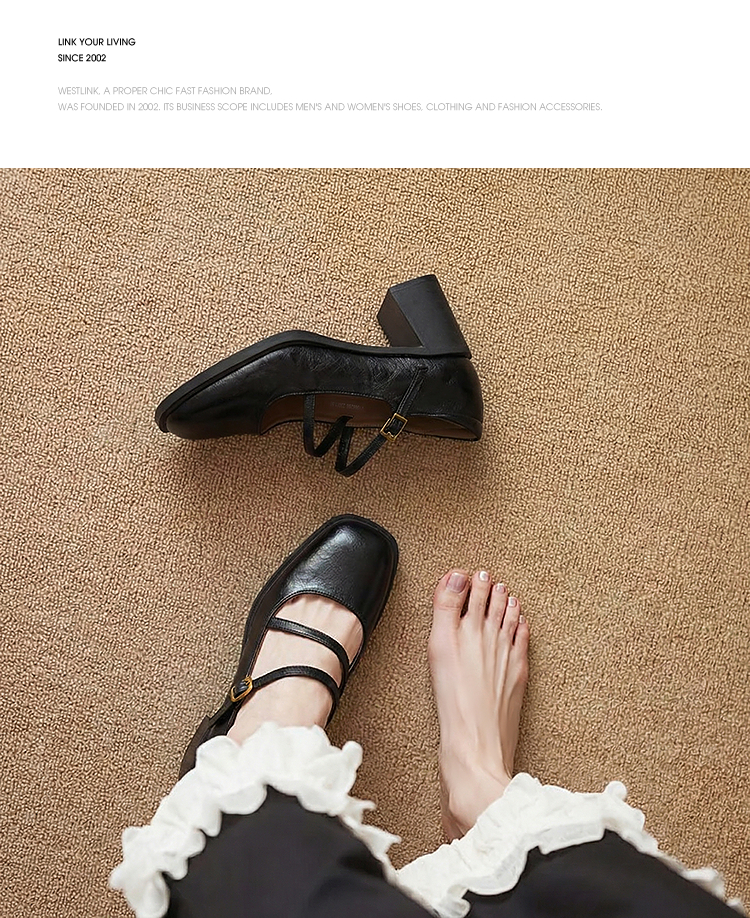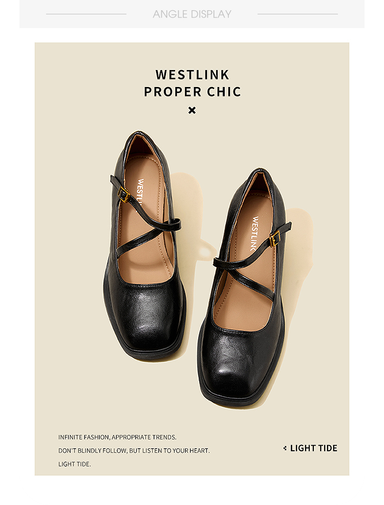 西遇浅口粗跟玛丽珍女鞋2026新款春季交叉细带皮鞋法式舒适单鞋子V0166266