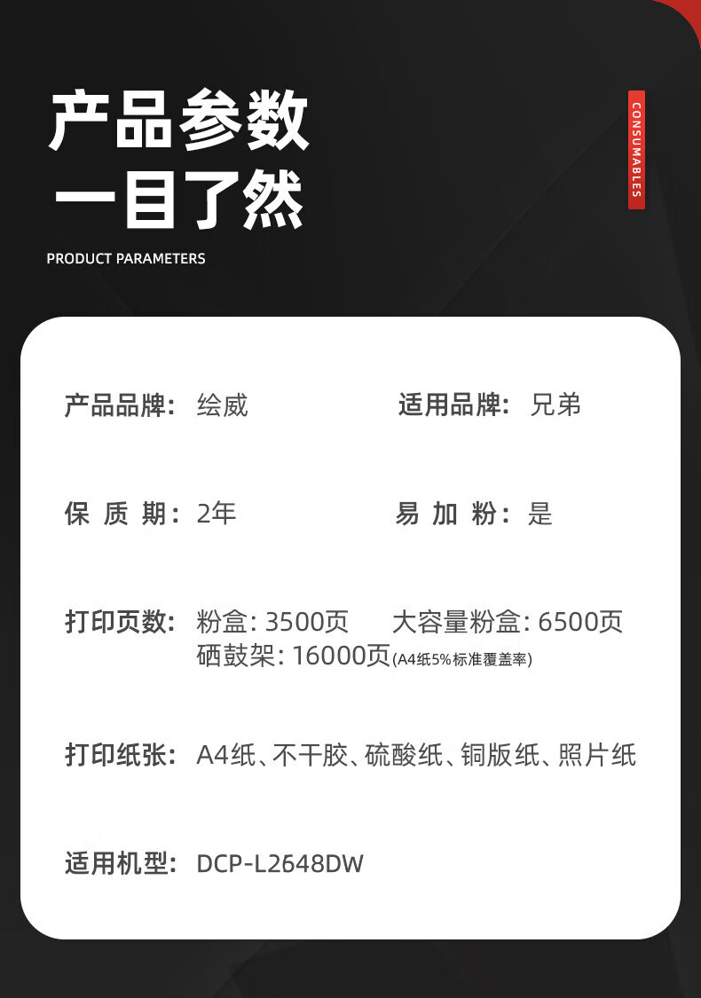 绘威L2648DW粉盒适用兄弟brother DCP-L2648DW打印机硒鼓 墨盒 墨粉盒