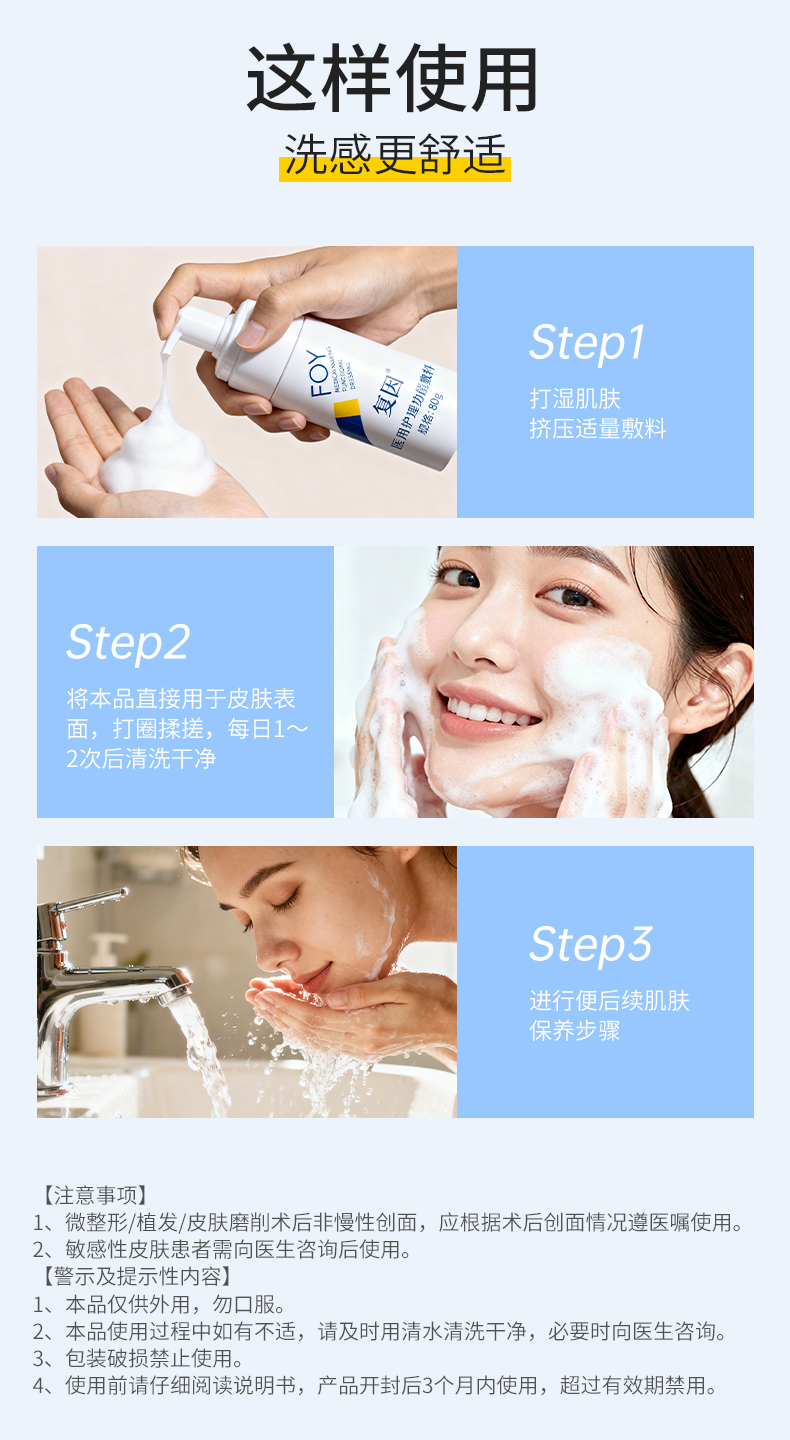 【2件9折,3件8折】复因FOY医用护理功能敷料80g(喷剂敷料(YSP-01)升级款)【院线同款】医美项目术后 创面护理 清洁 敏感肌 温和洁面泡沫**2件9折、3件8折