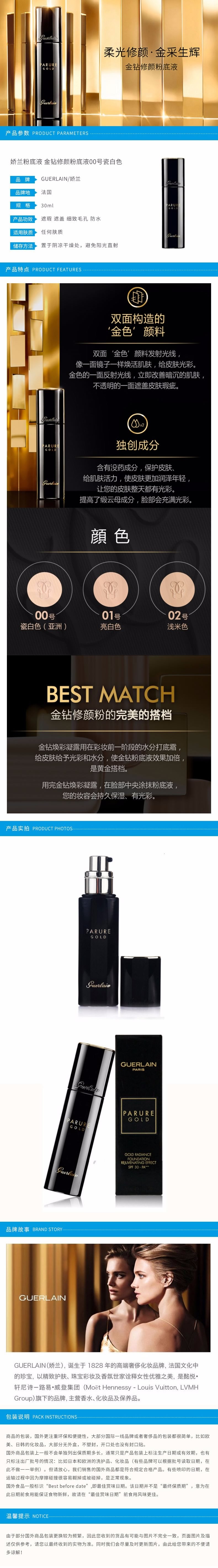 GUERLAIN 娇兰 金钻修颜粉底液 #01象牙白 #瓷白色30ml 法国