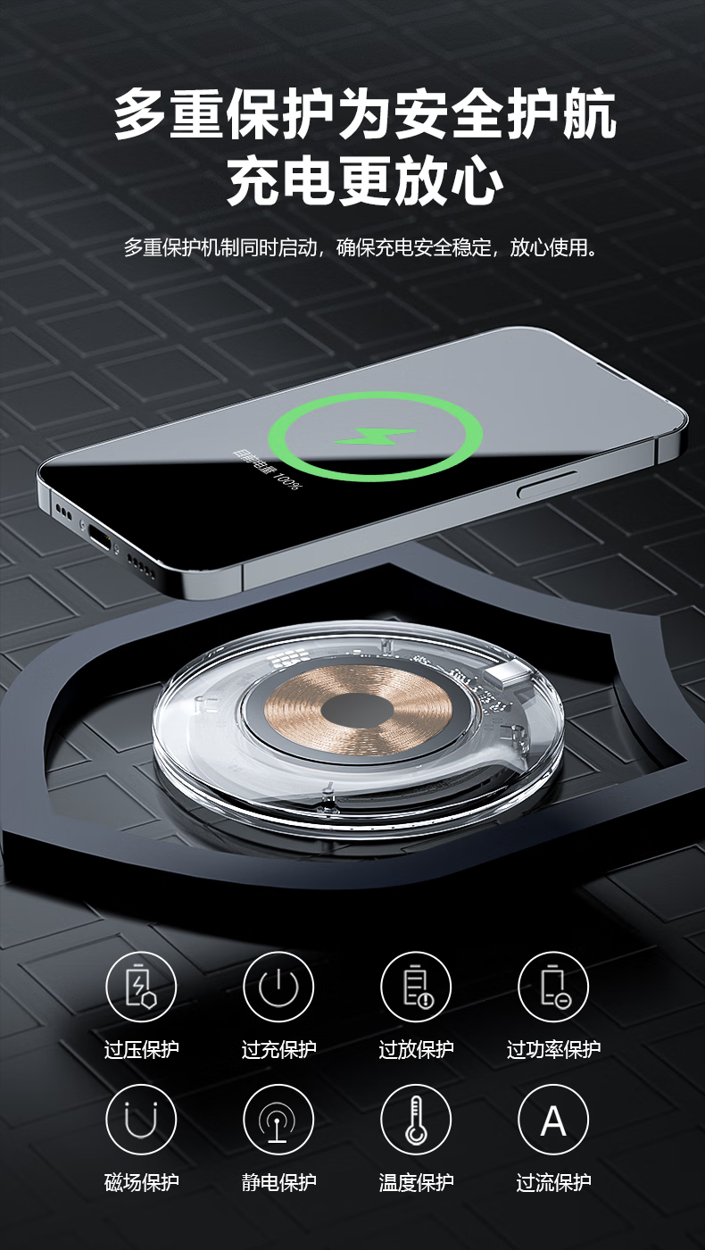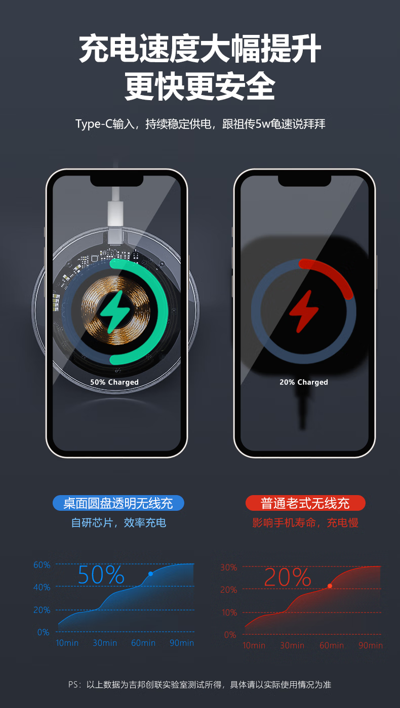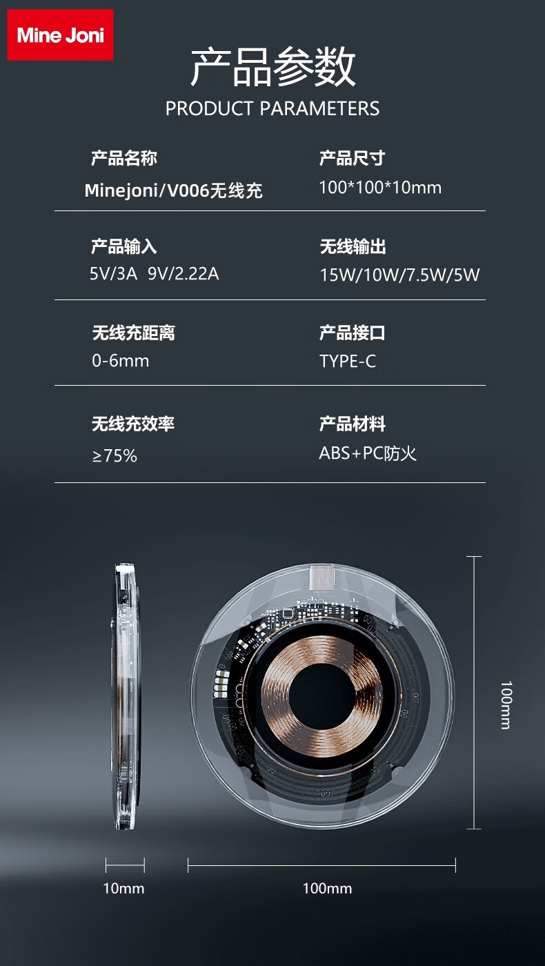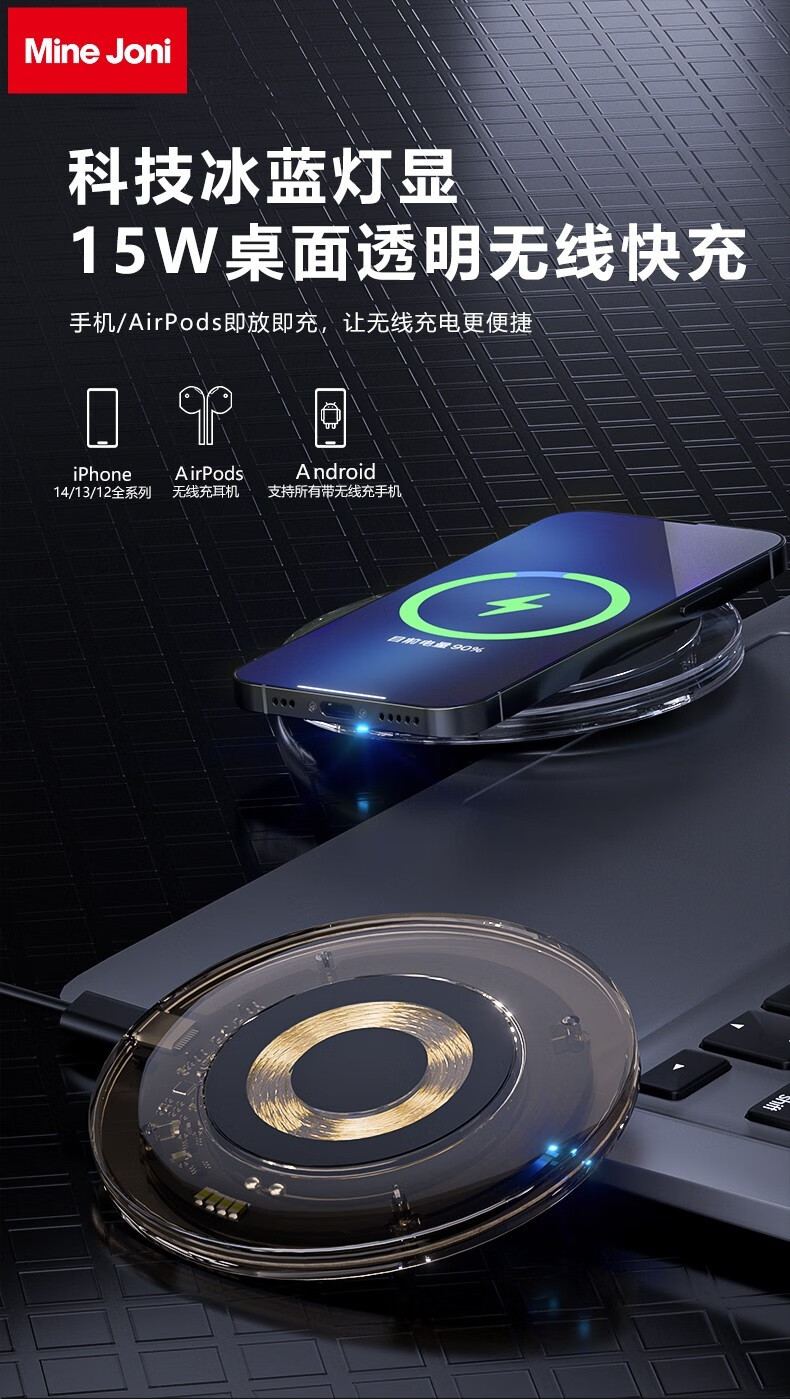 MINEJONIMinejoni V006苹果无线充电器华为三星小米手机万能通用无线快充 透明黑色