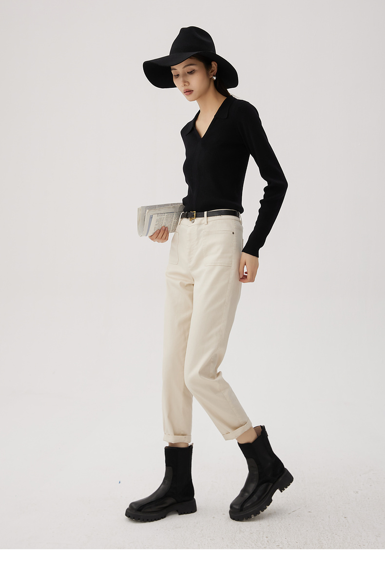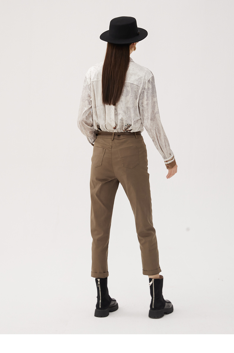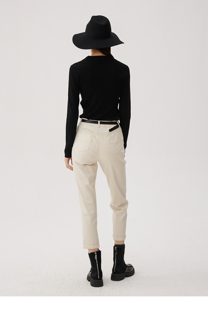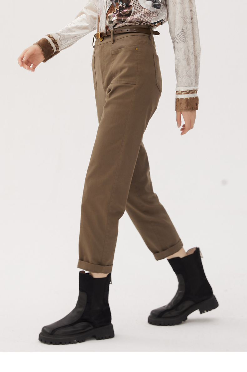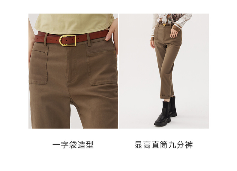 谜底直筒裤女士2024秋新品复古百搭高腰宽松弹力九分裤243MK1206