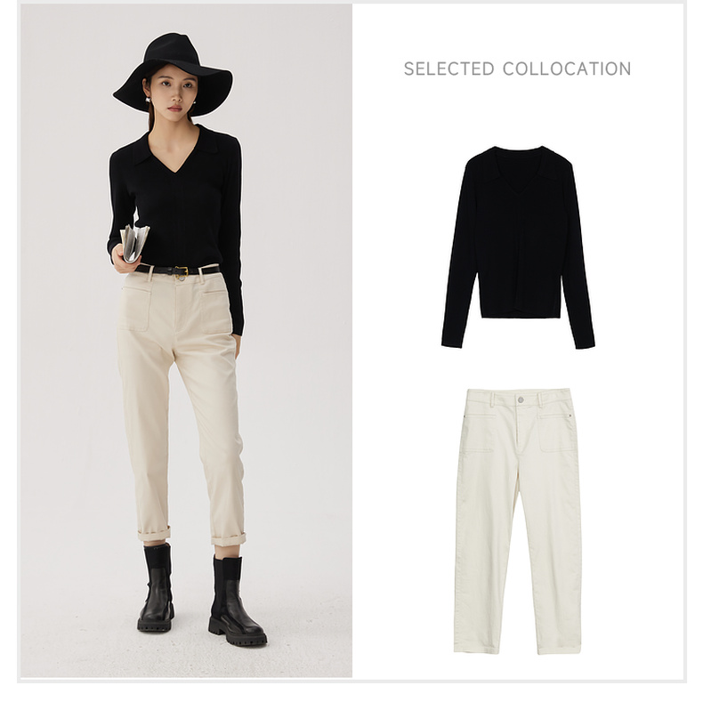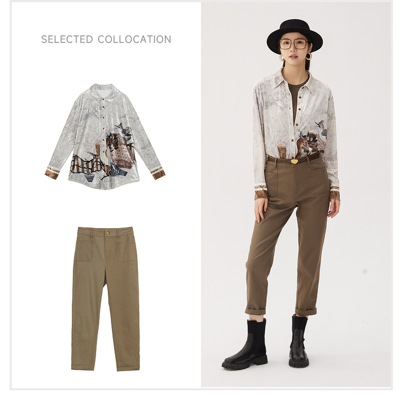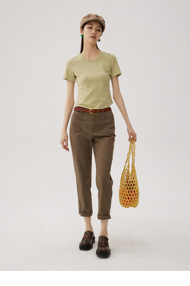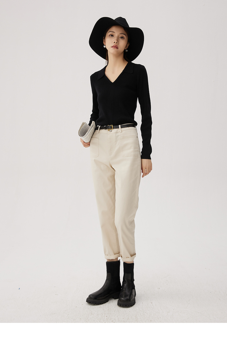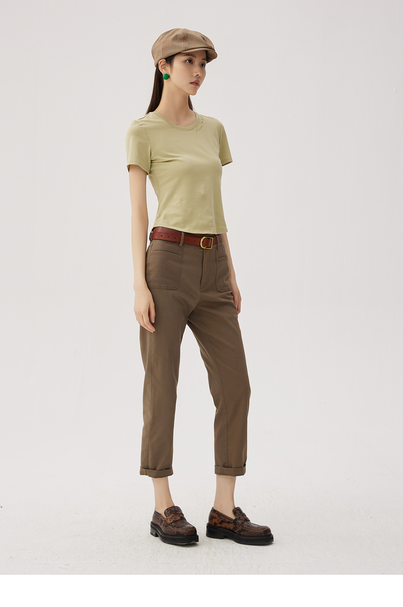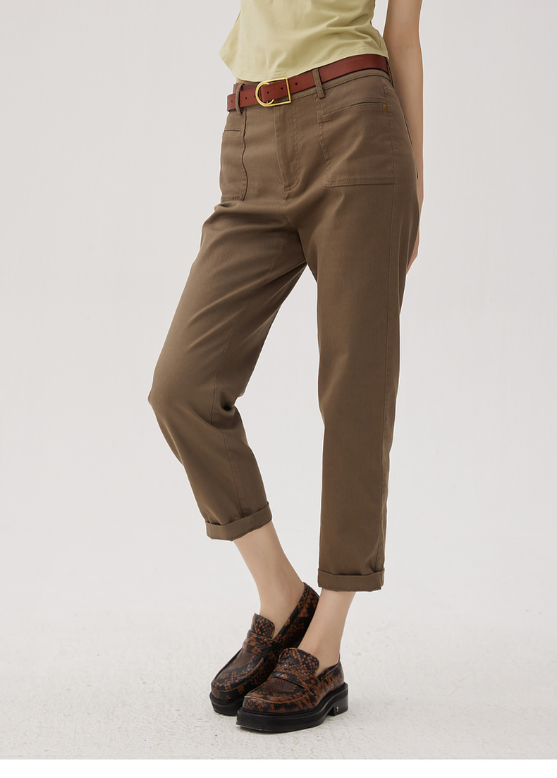 谜底直筒裤女士2024秋新品复古百搭高腰宽松弹力九分裤243MK1206