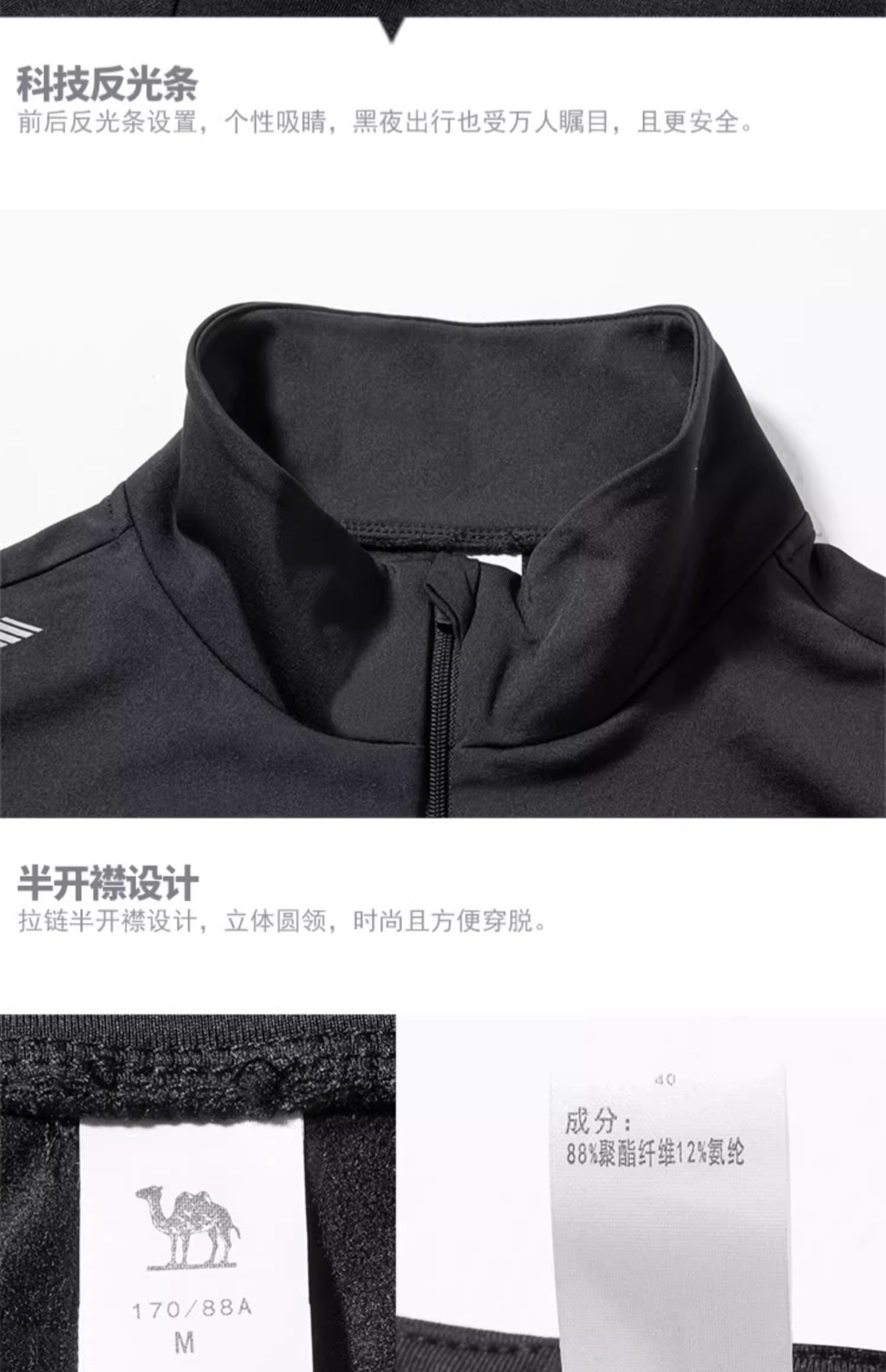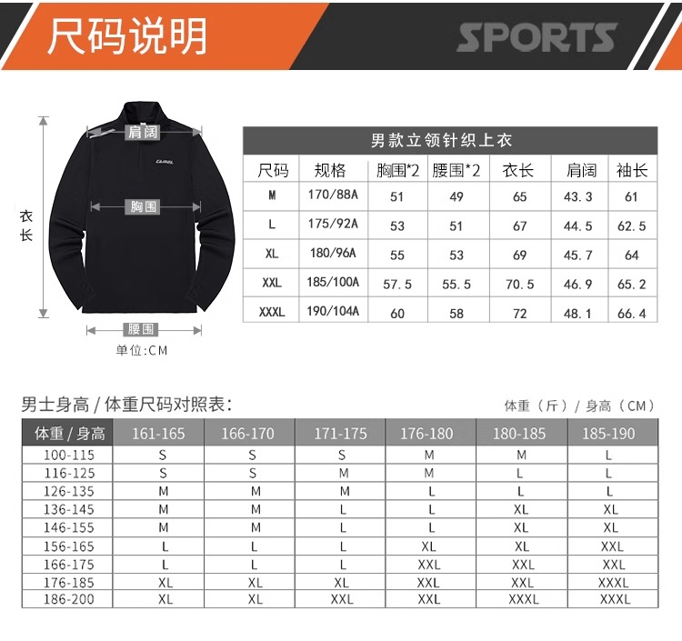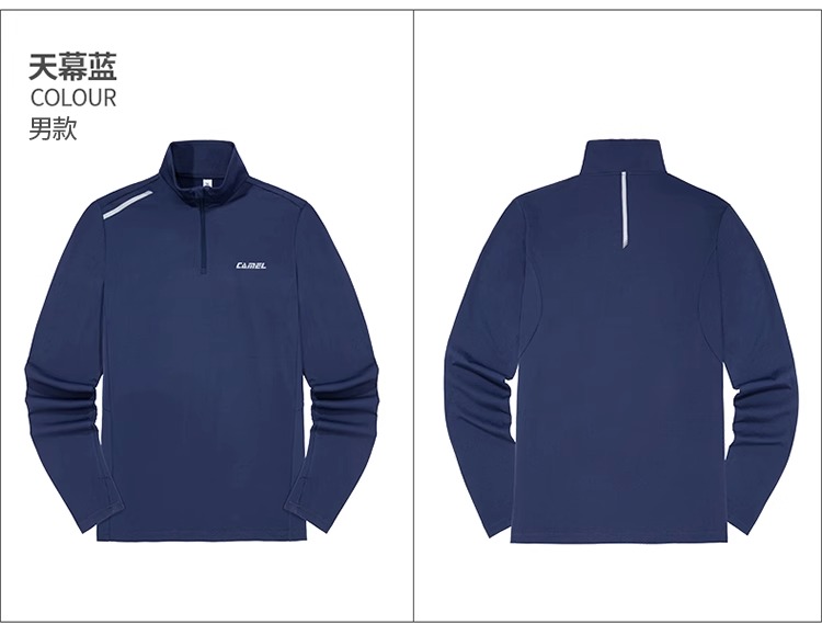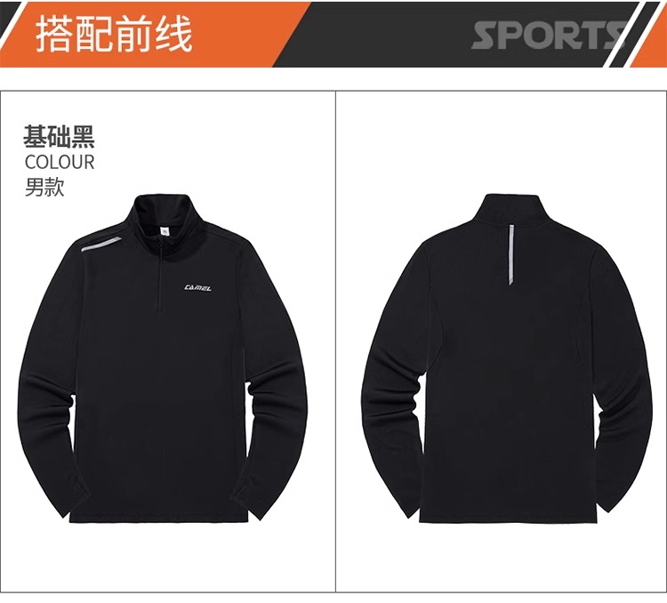 【109元2件】骆驼2025秋季新款运动服男士加绒立领长袖t恤速干跑步健身训练服 C14CAVZ610