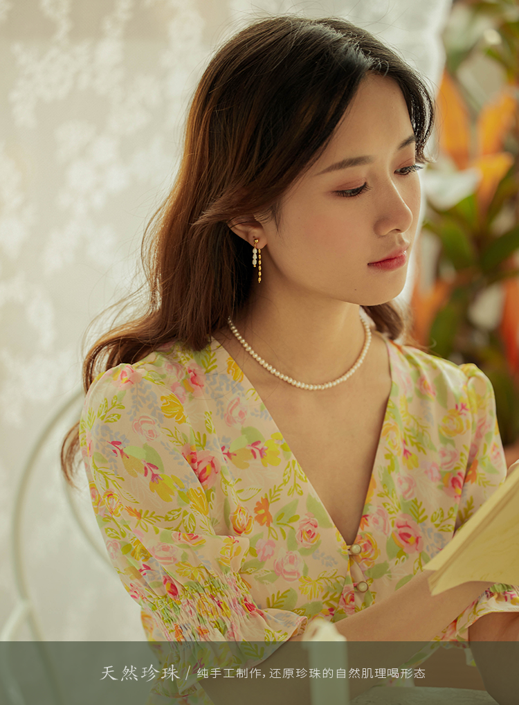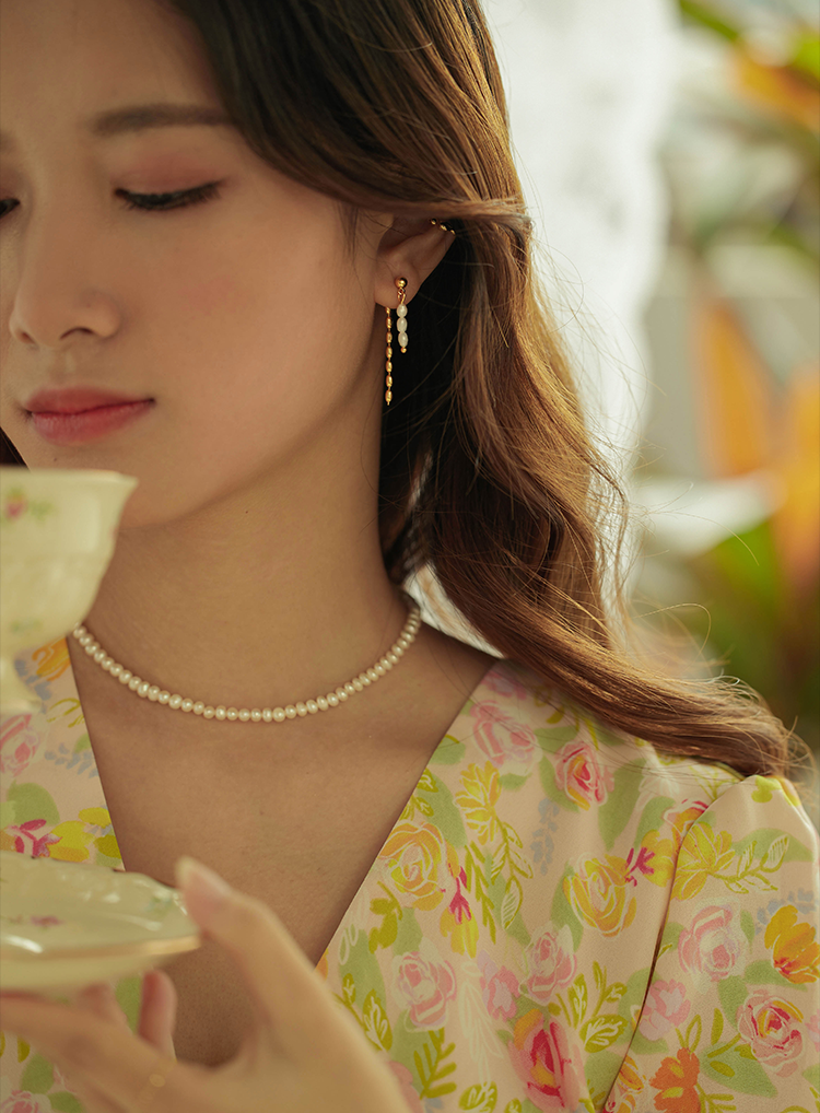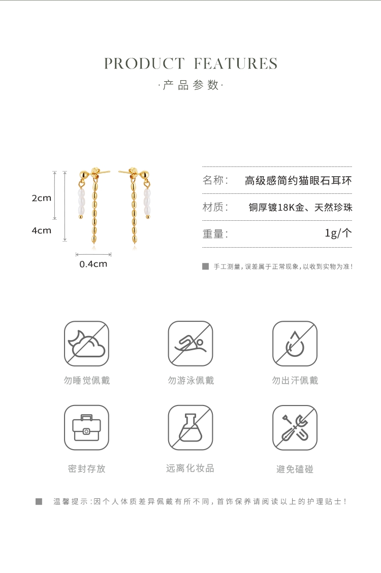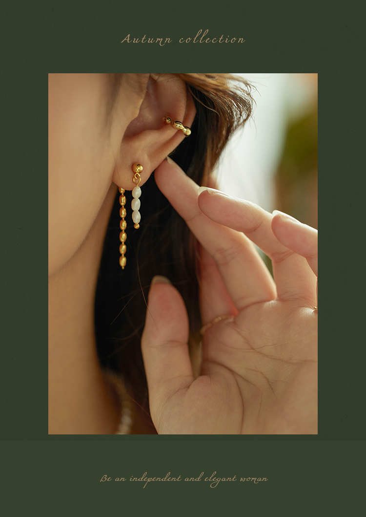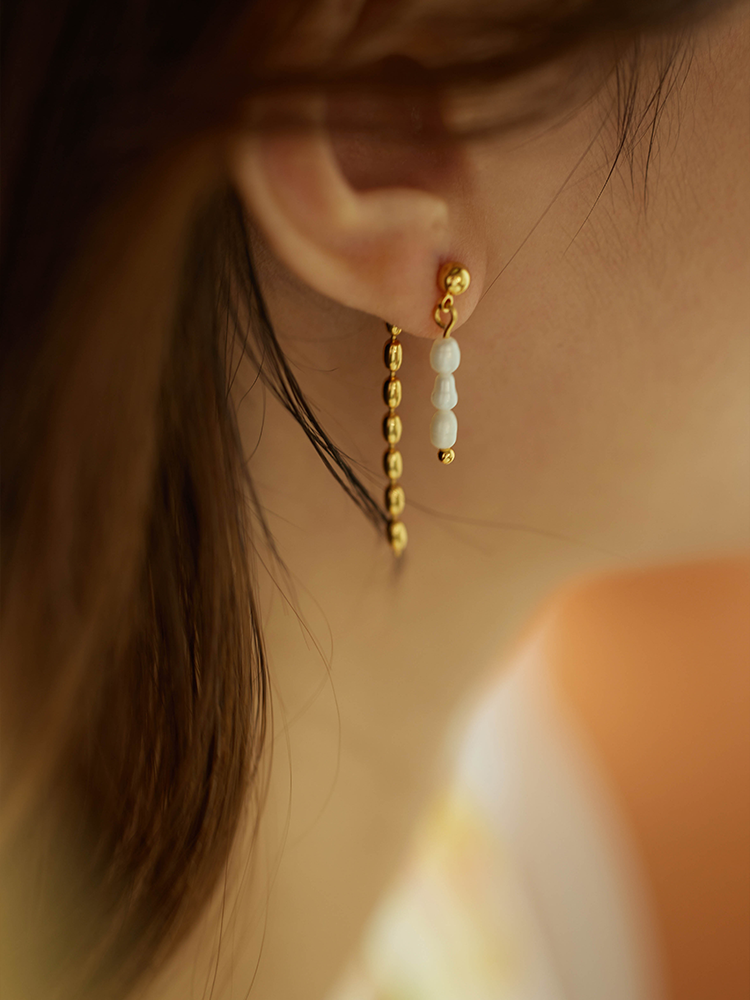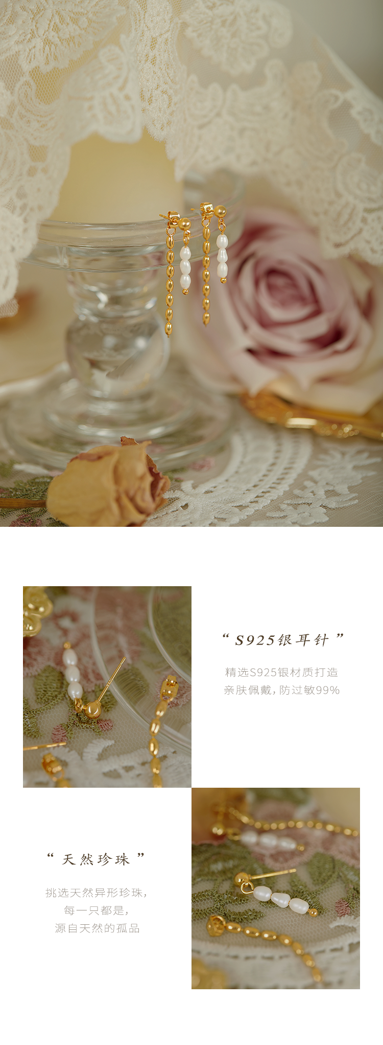 Oflye潮流饰品 法式复古珍珠流苏耳环简约百搭气质精致前后戴耳饰
