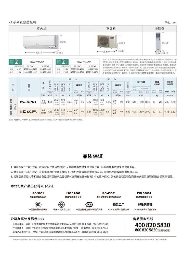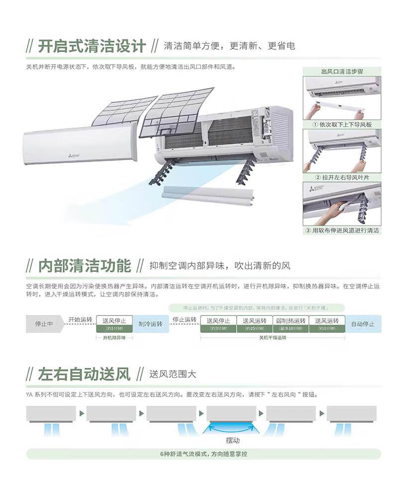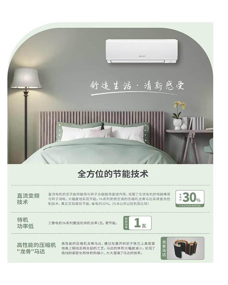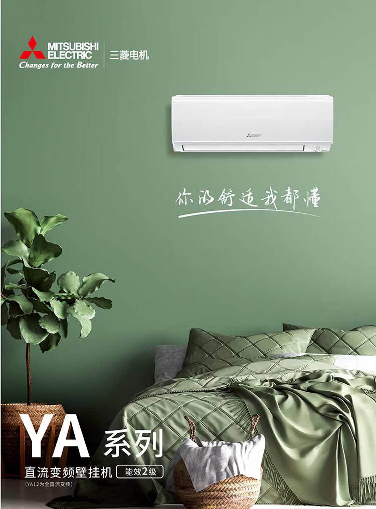 三菱电机 YA系列新2级能效 低噪轻音 变频冷暖 空调挂机 1匹MSZ-YA09VA/1.5匹MSZ-YA12VA