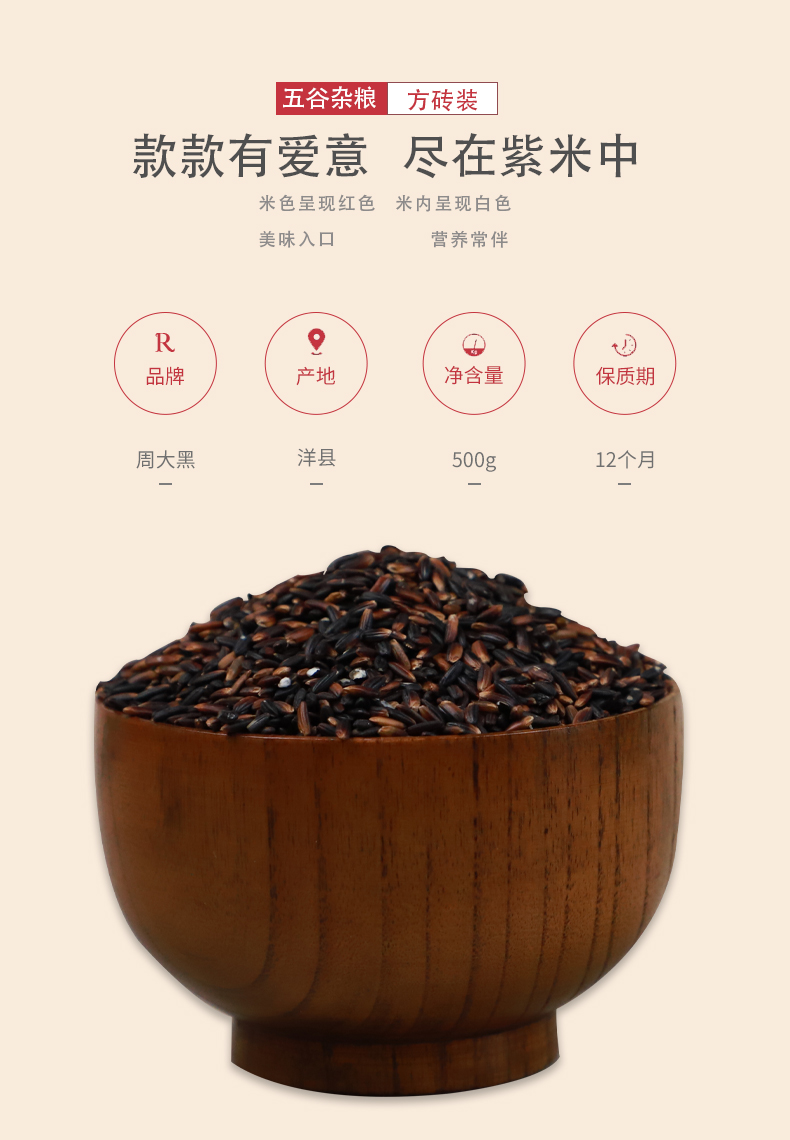 洋县周大黑紫米方砖500克