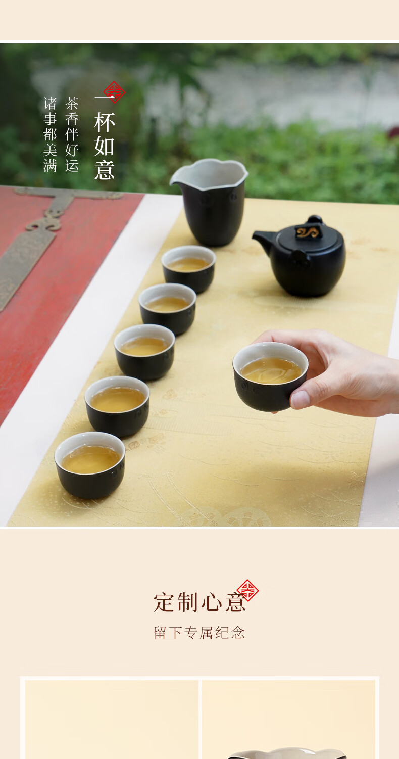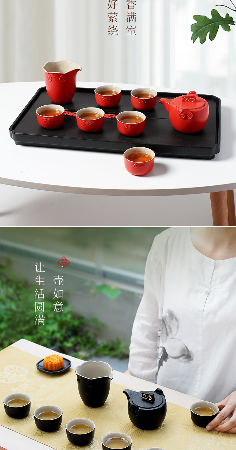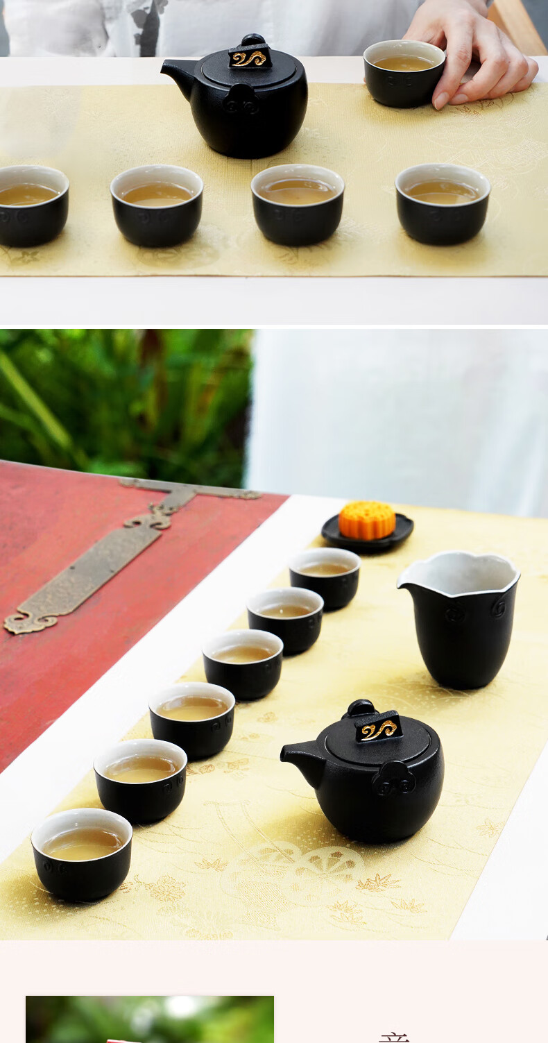 陆宝台湾茶具整套 陶瓷高档家用功夫茶具套装茶壶茶杯礼盒装 称心如意 禅风黑 9件(仅1套,无货退款