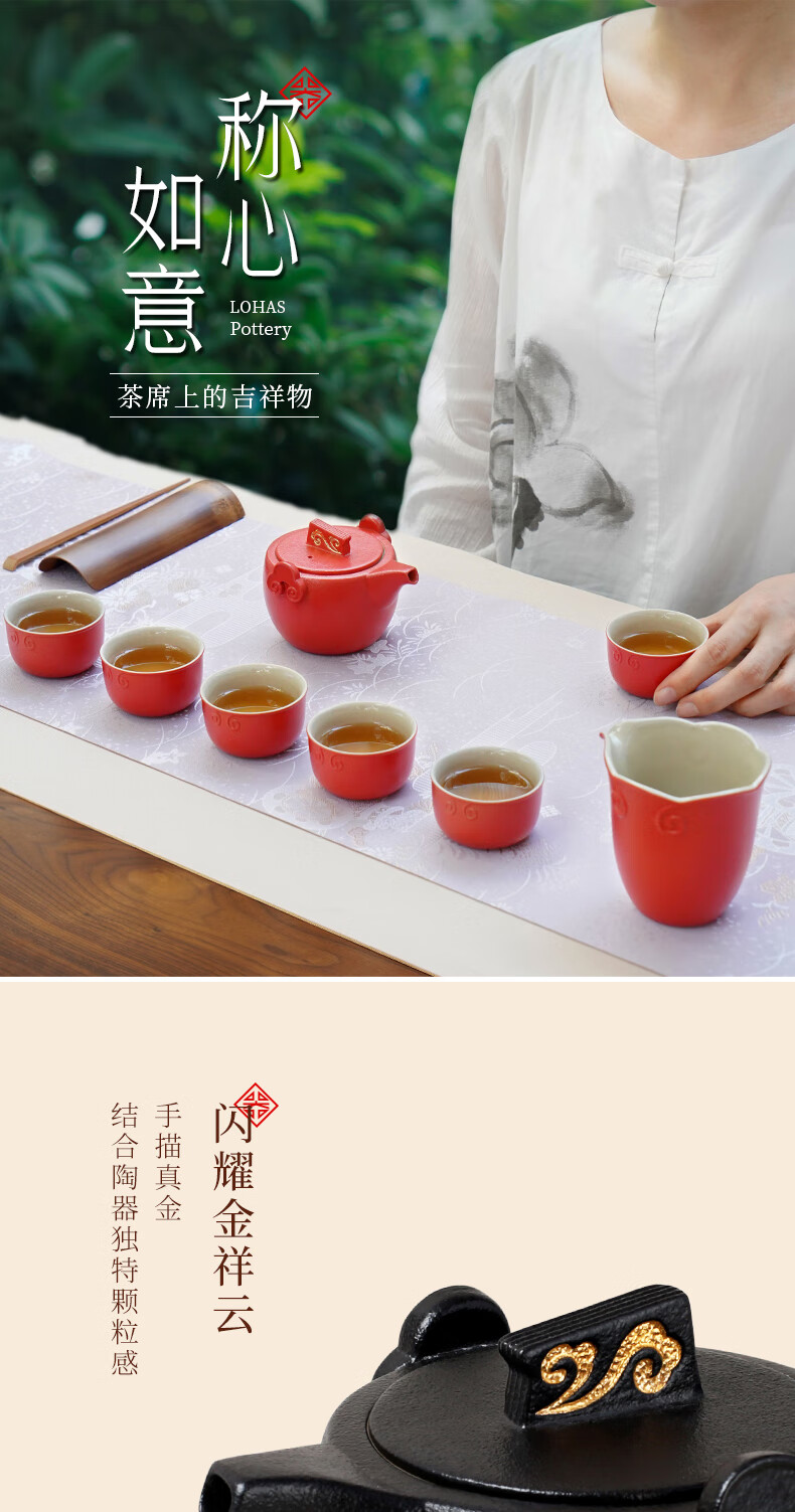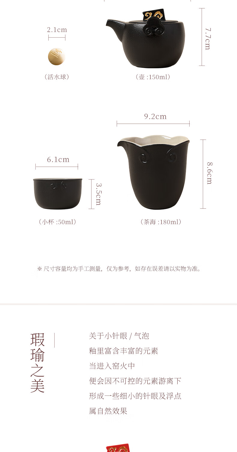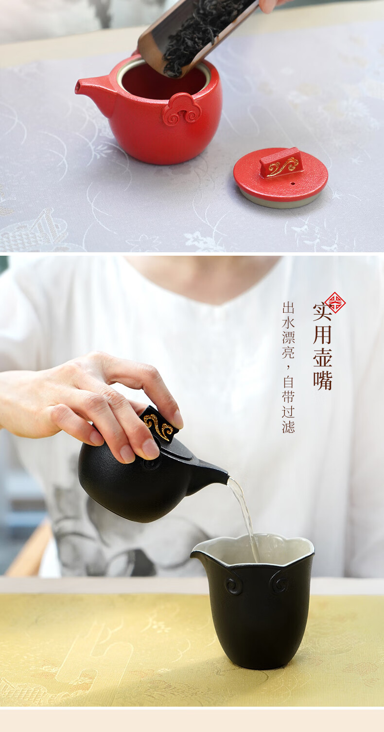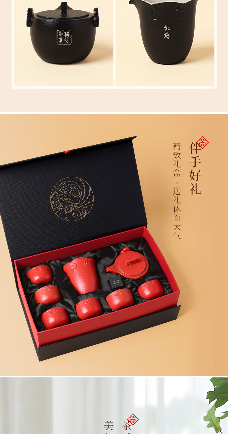 陆宝台湾茶具整套 陶瓷高档家用功夫茶具套装茶壶茶杯礼盒装 称心如意 禅风黑 9件(仅1套,无货退款