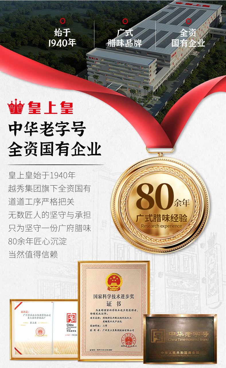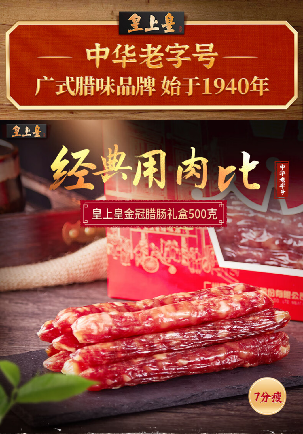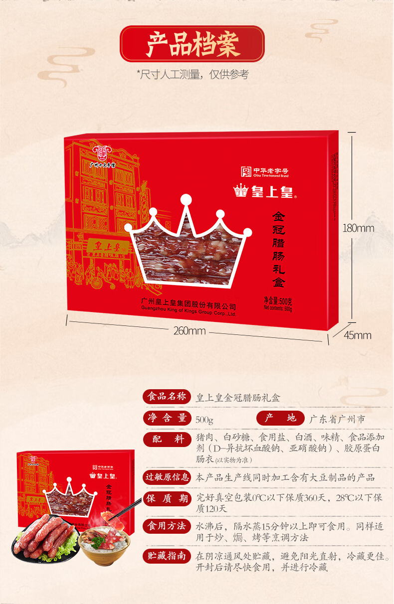 皇上皇丨中华老字号 金冠腊肠礼盒500g 广式香肠年货福利团购特产