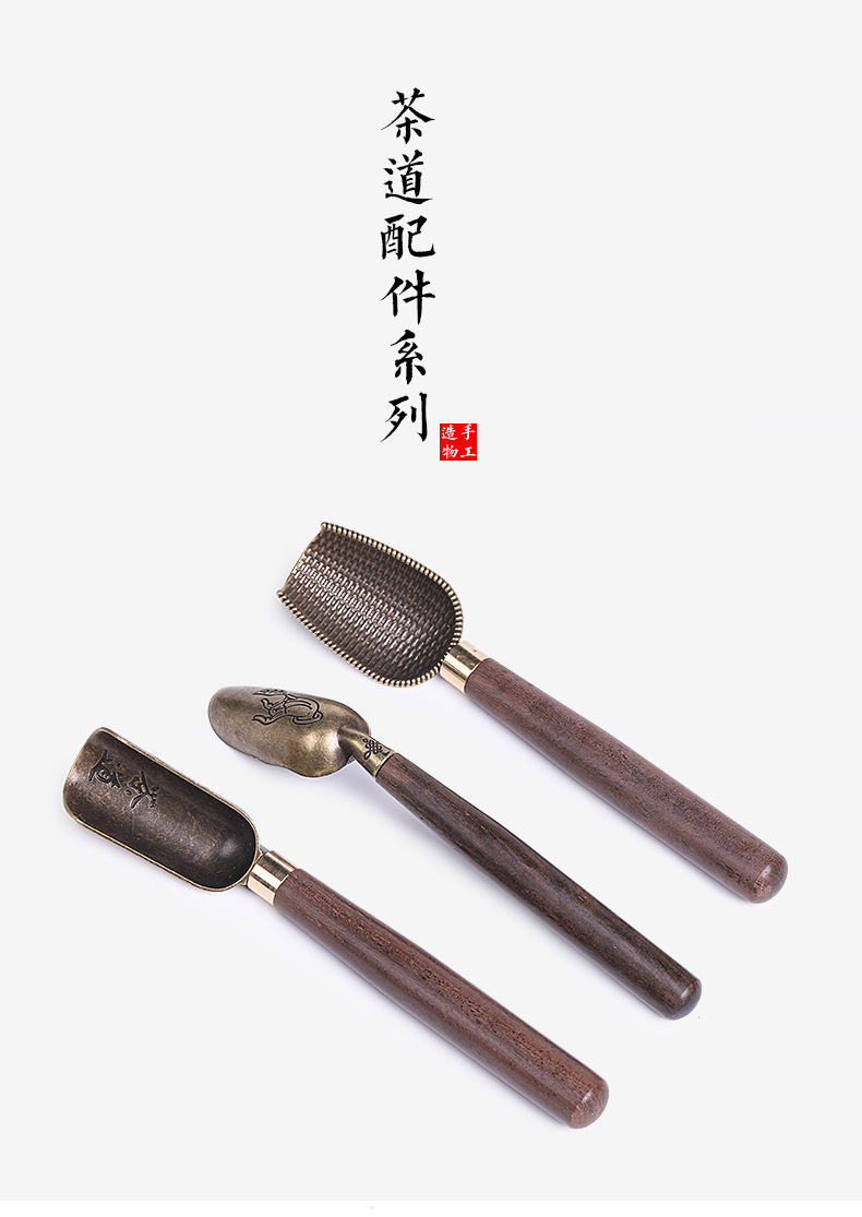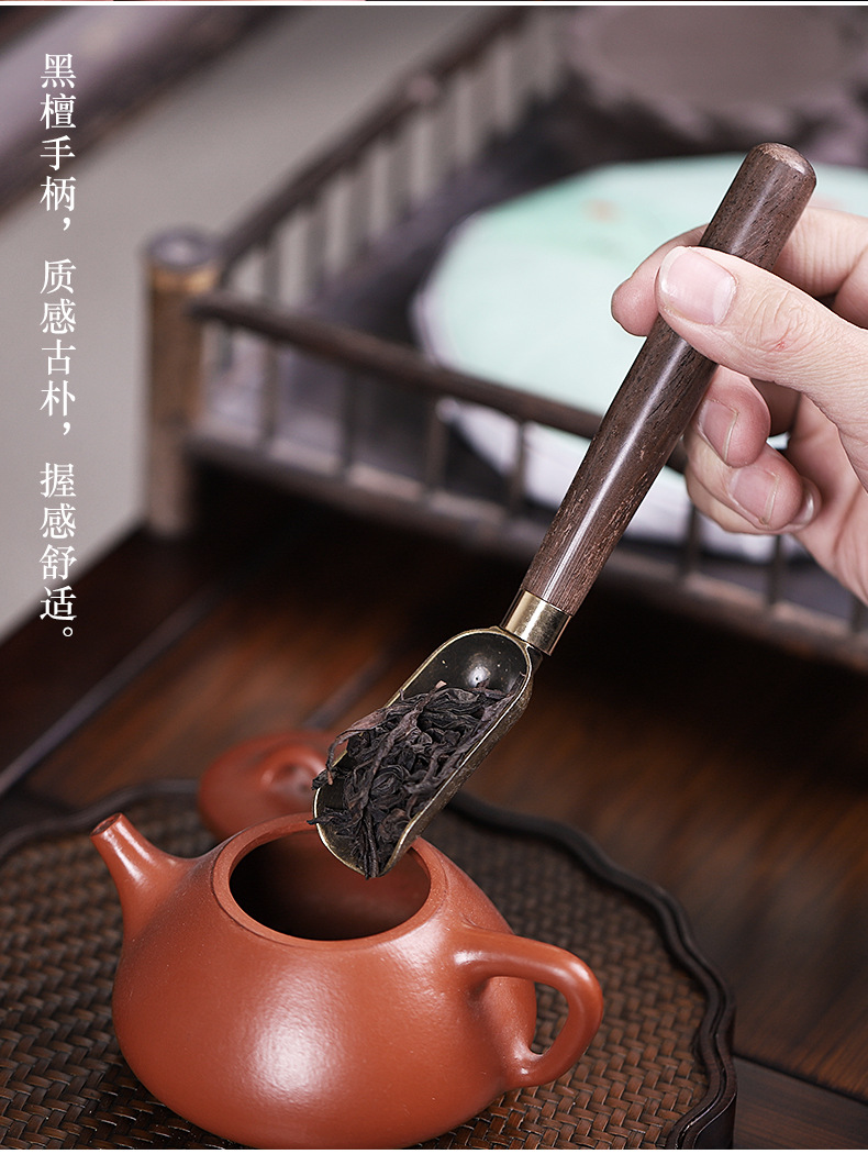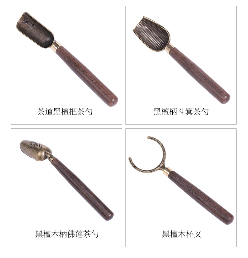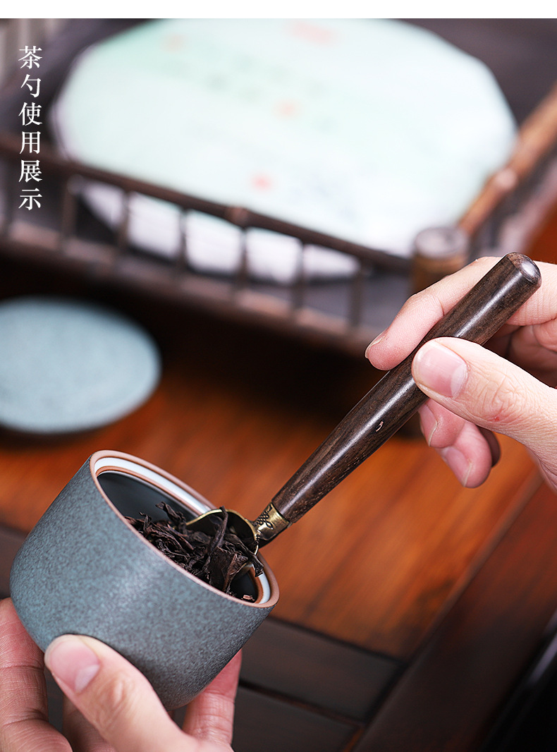 黑檀木合金茶匙茶勺禅意木把茶铲取茶叶勺子家用茶杯夹子茶道配件