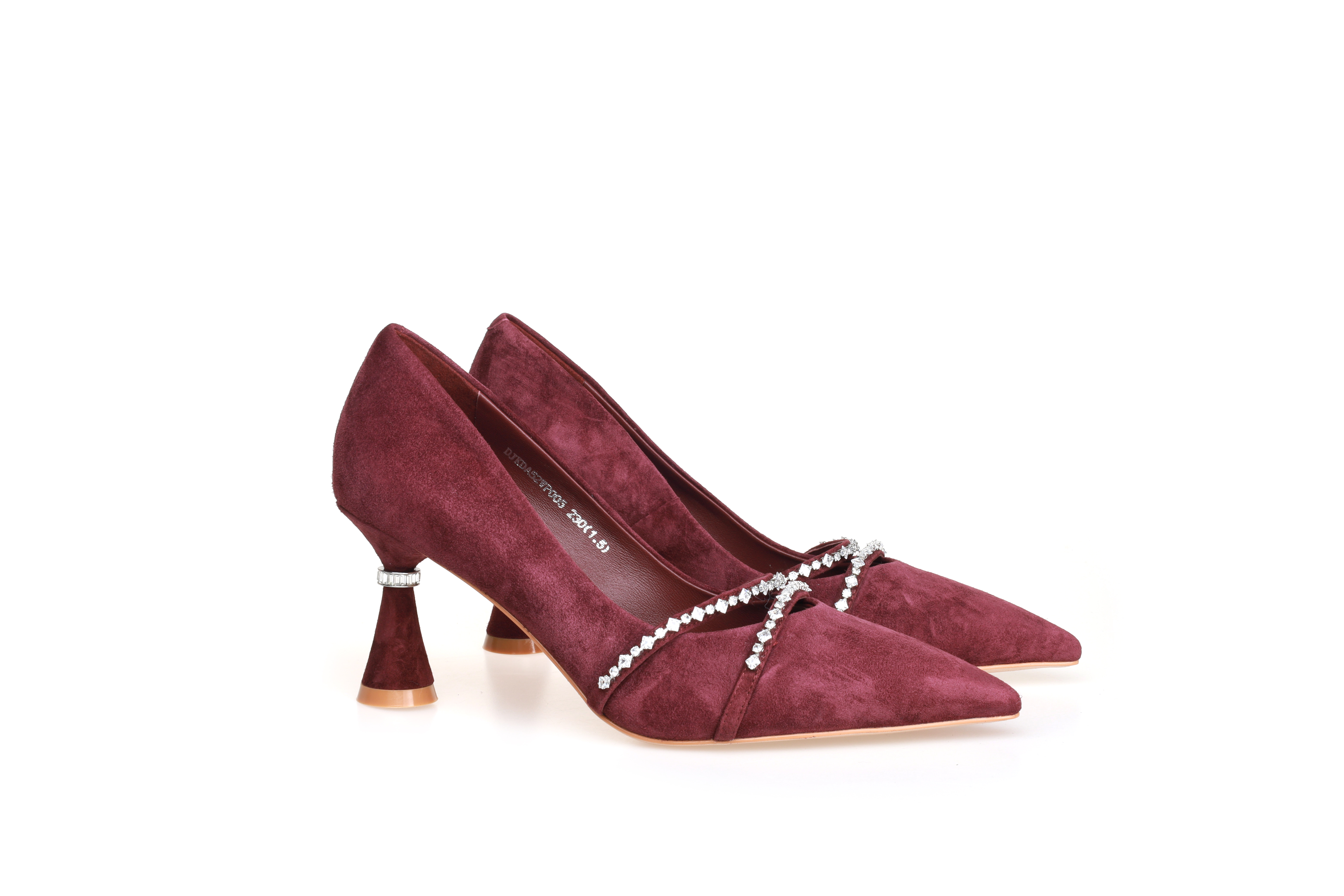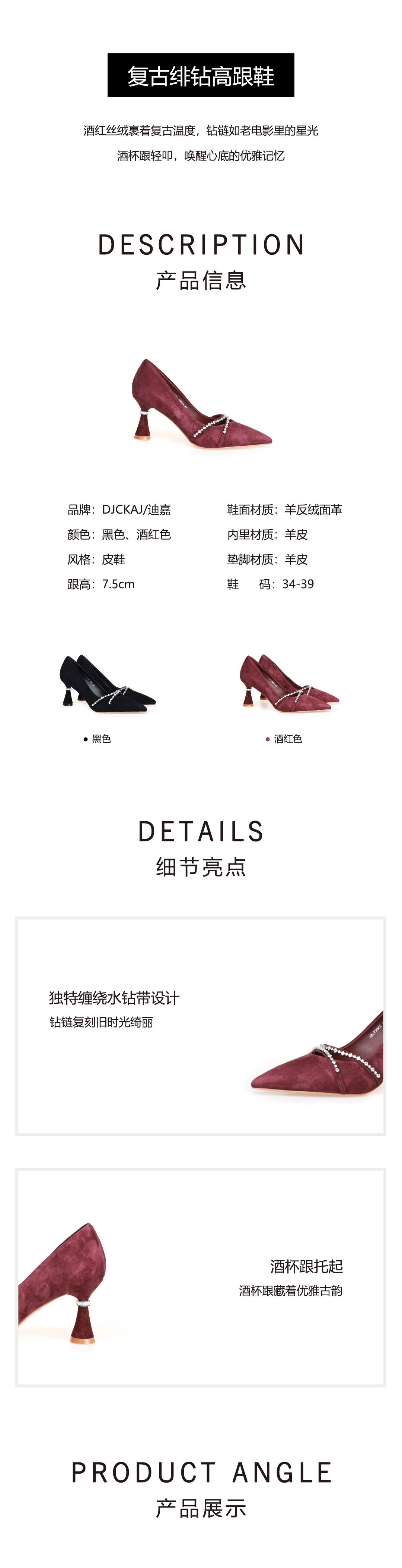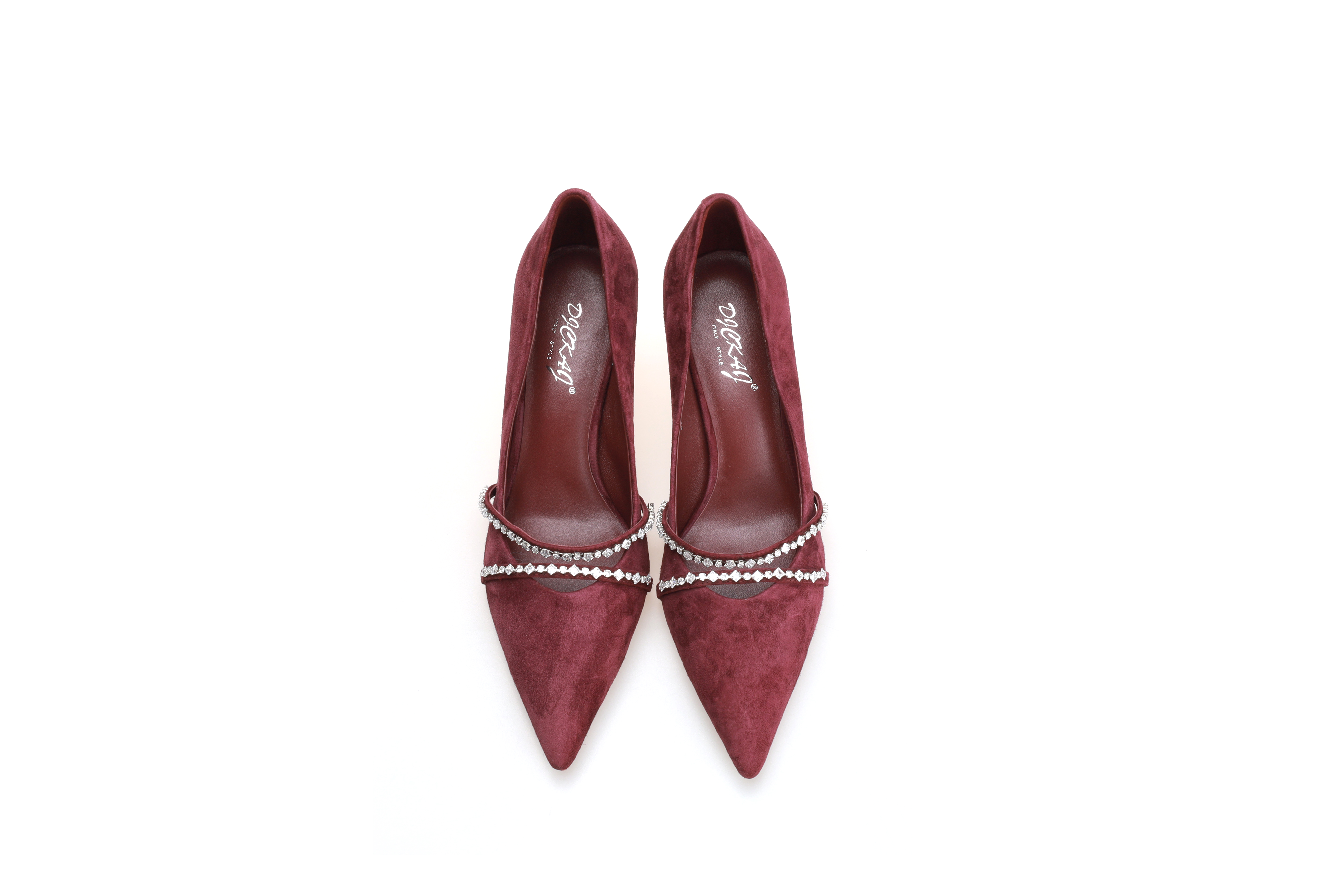 豪麟名鞋迪嘉女鞋皮鞋羊反绒面革DJKDA52WP005酒红色