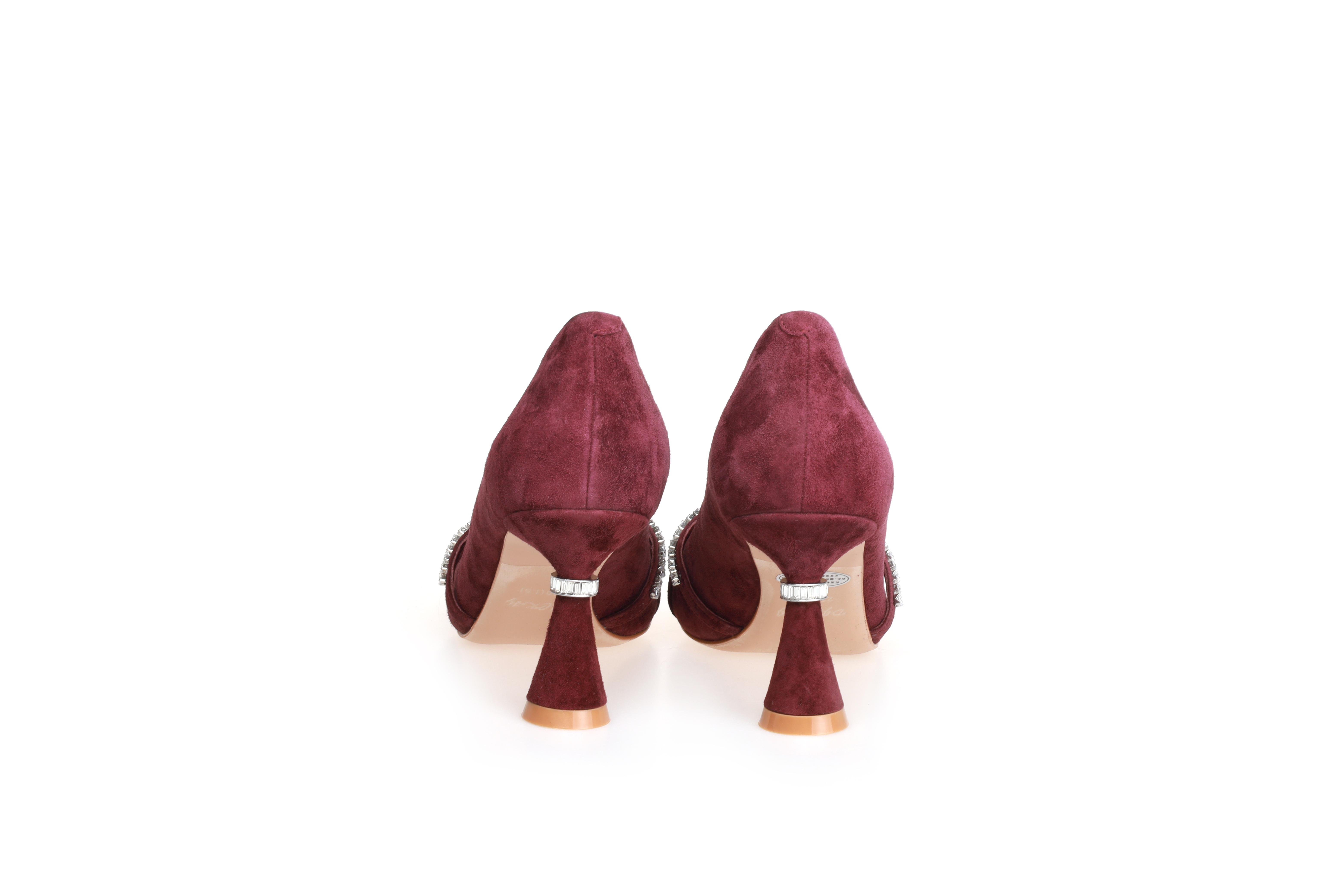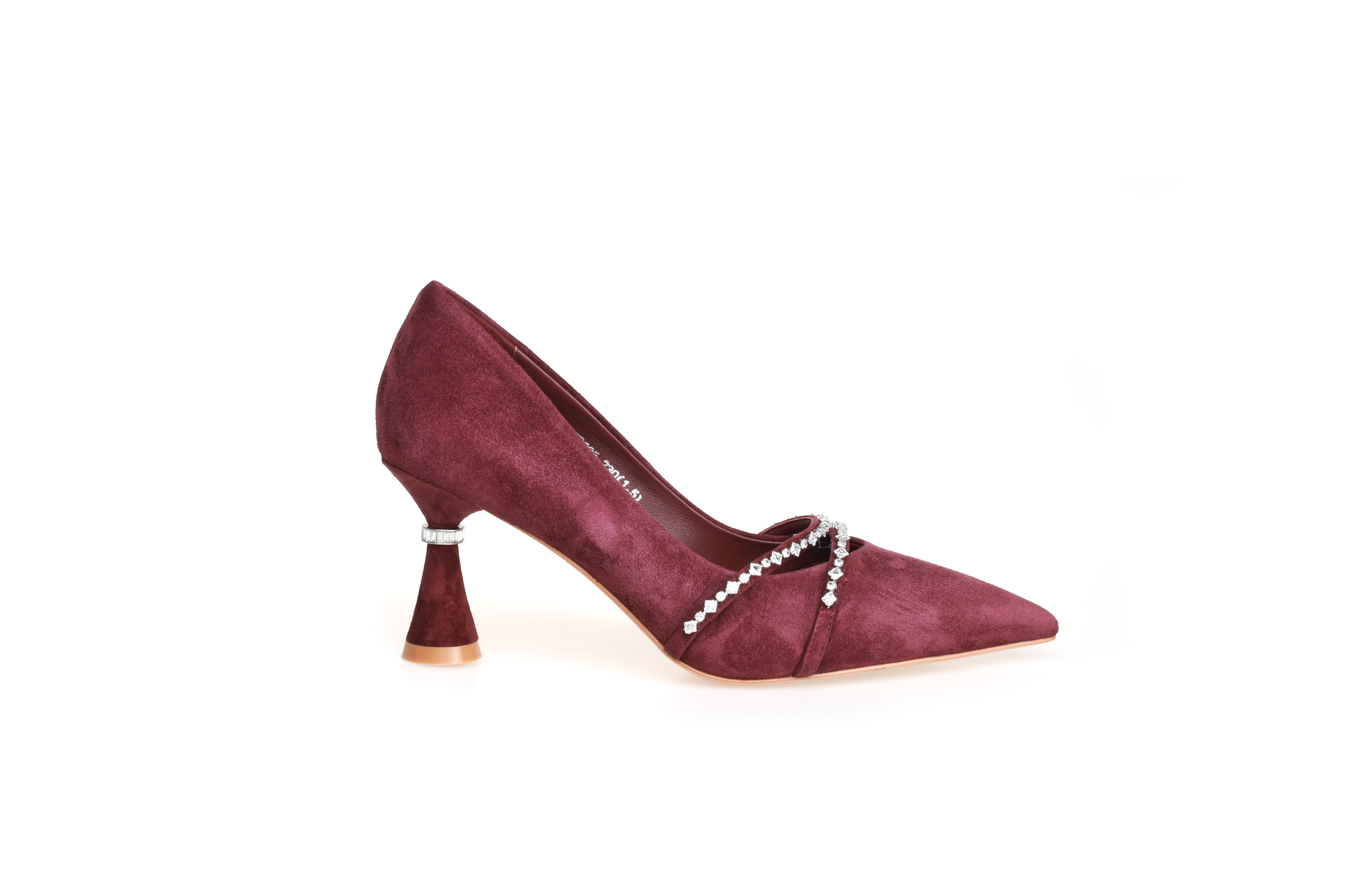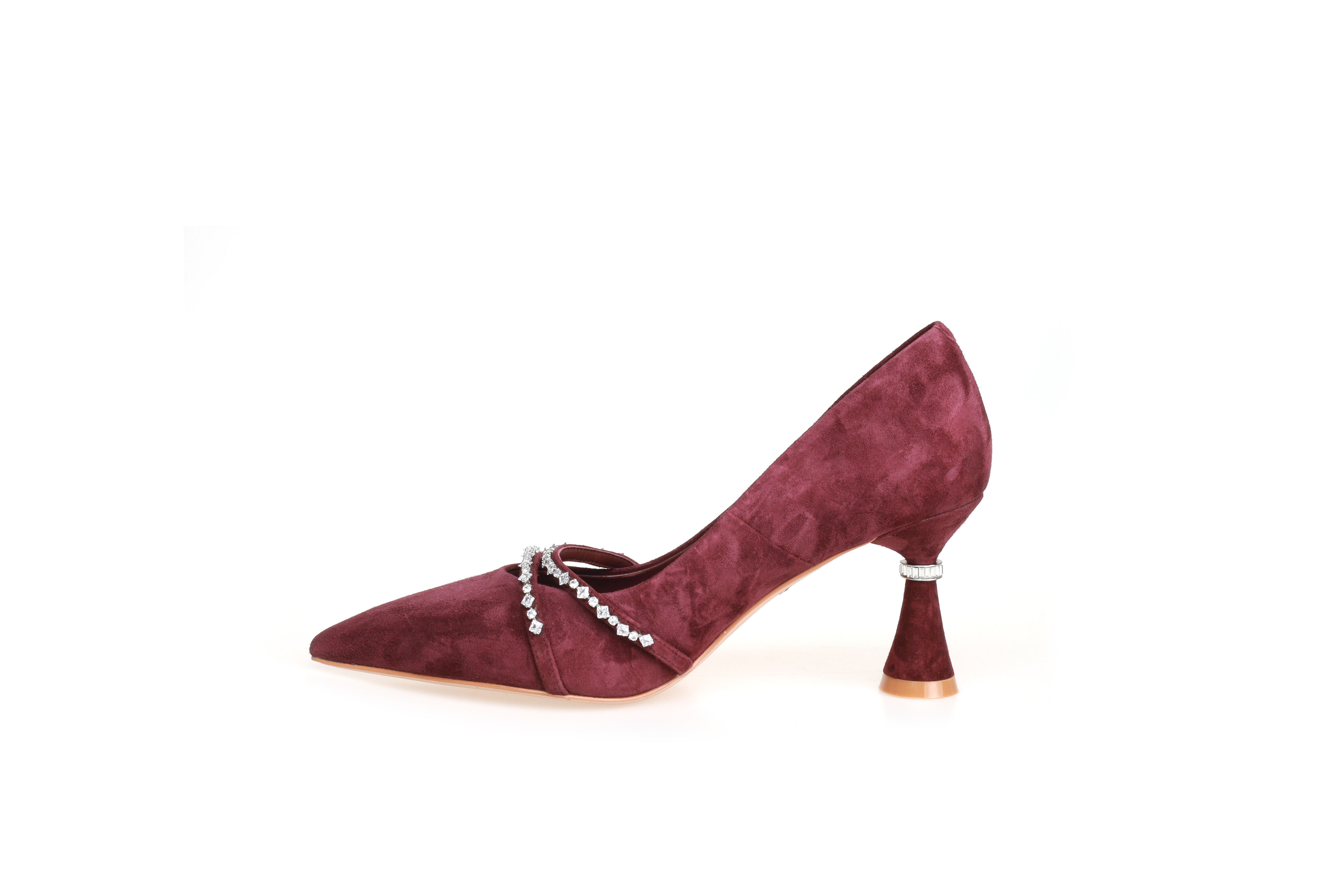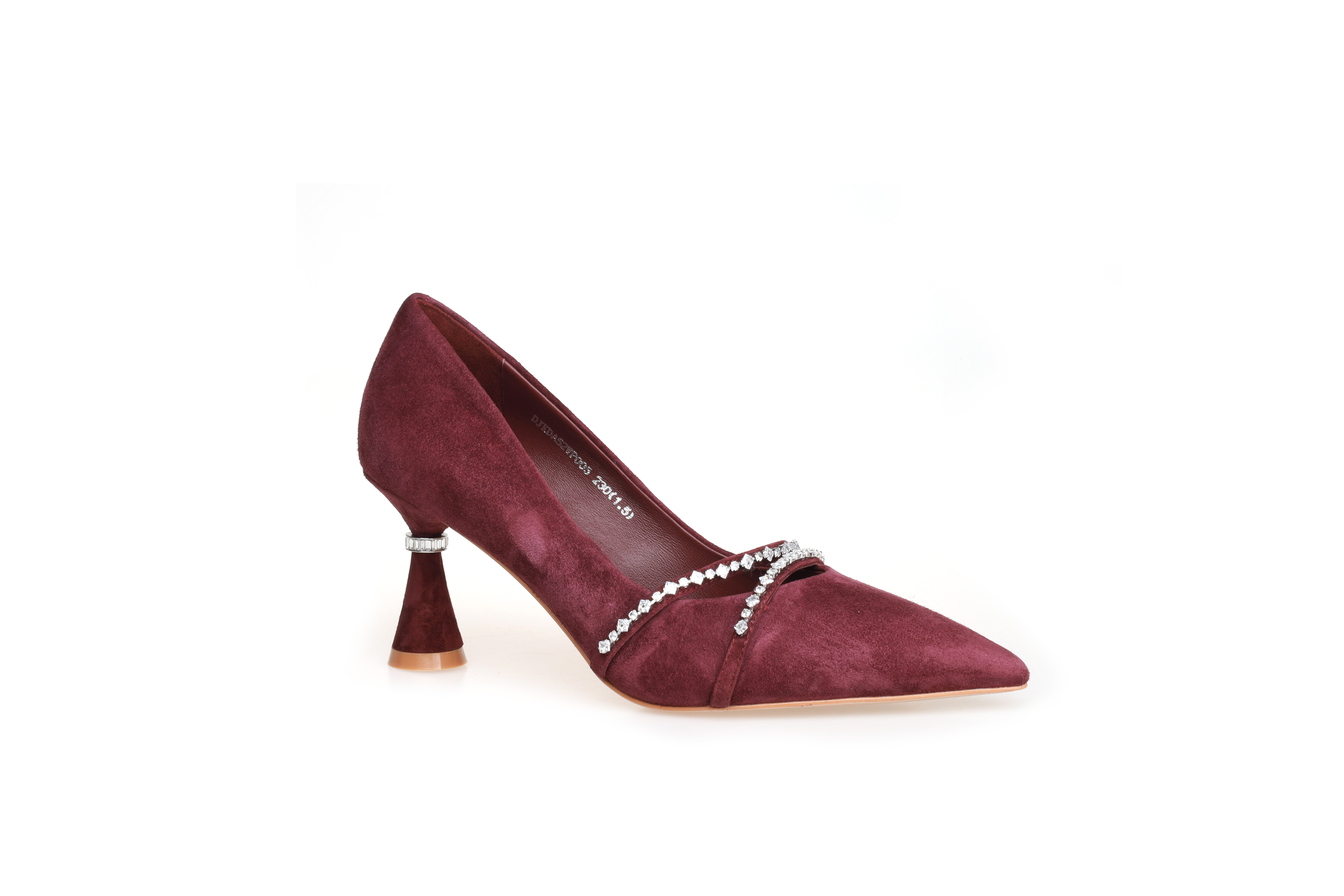 豪麟名鞋迪嘉女鞋皮鞋羊反绒面革DJKDA52WP005酒红色