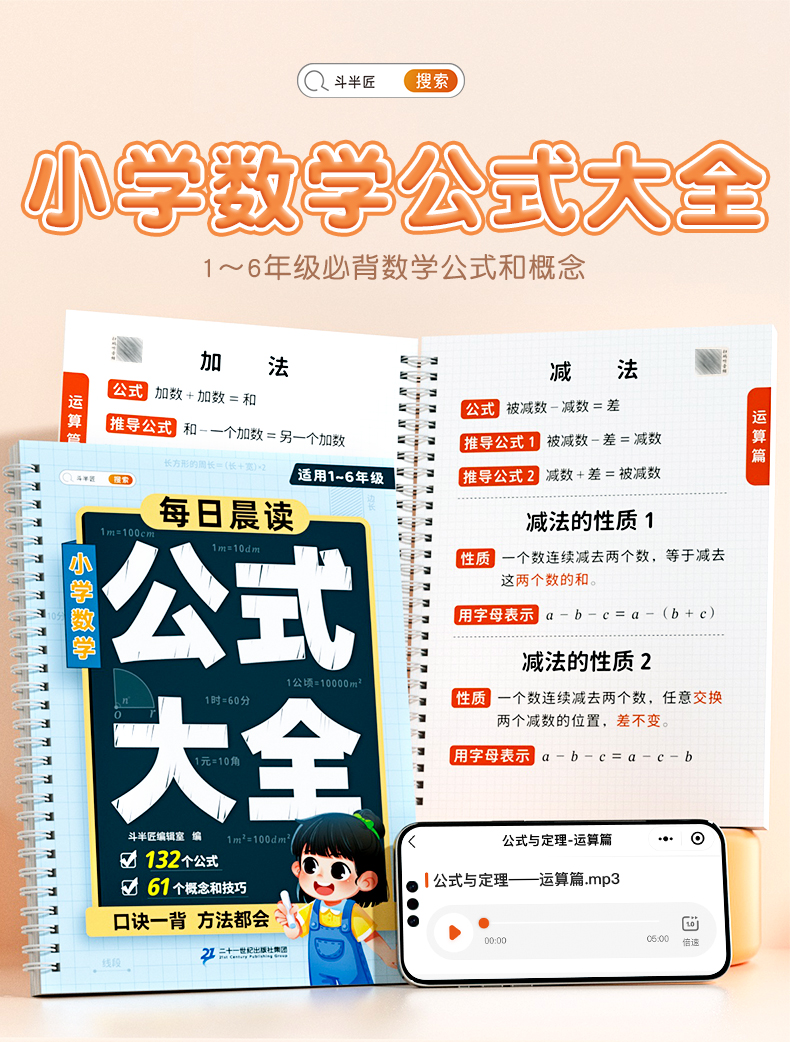 1-6年|【斗半匠】小学数学公式大全每日晨读小学1-6年级数学公式解题技巧