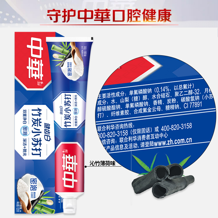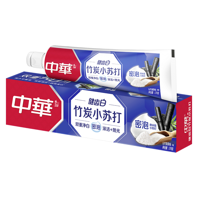 【批发团购】中华健齿白竹炭小苏打牙膏 沁竹薄荷90g/170g(箱规54)