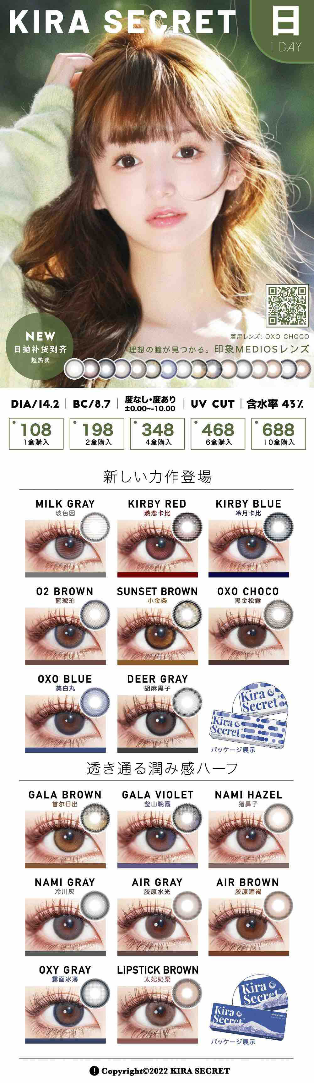 【日抛】Kira Secret日抛 108/盒 198/2盒 348/4盒 468/6盒 688/10盒(0-800度)