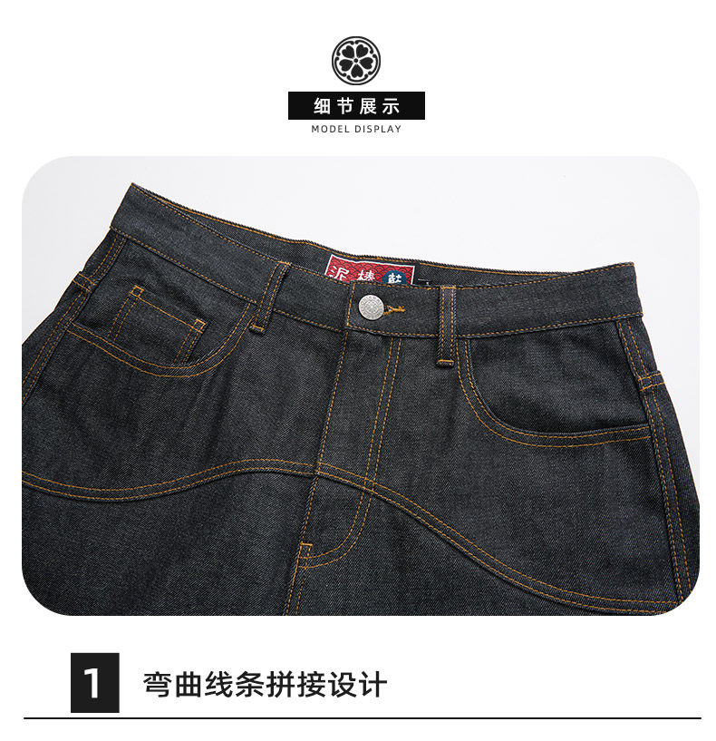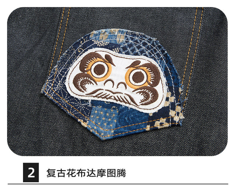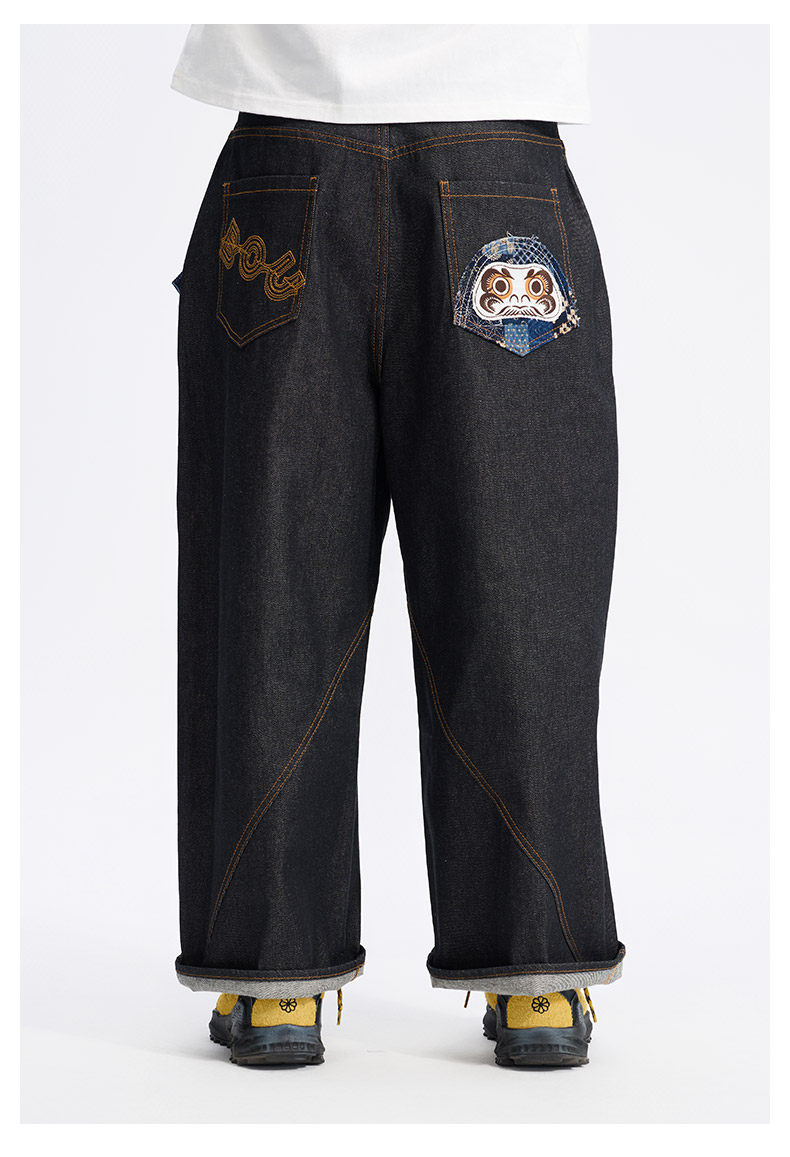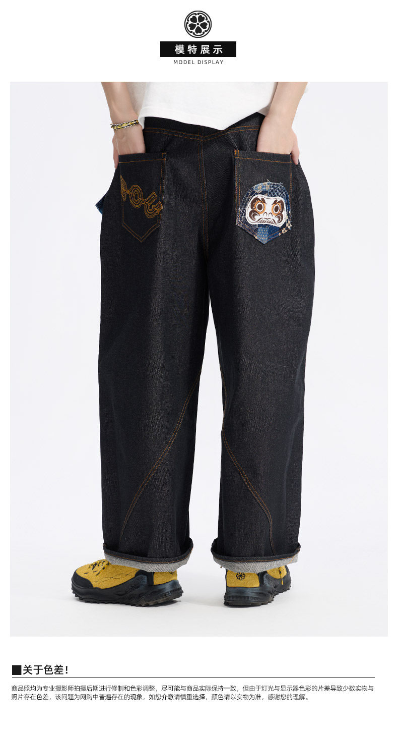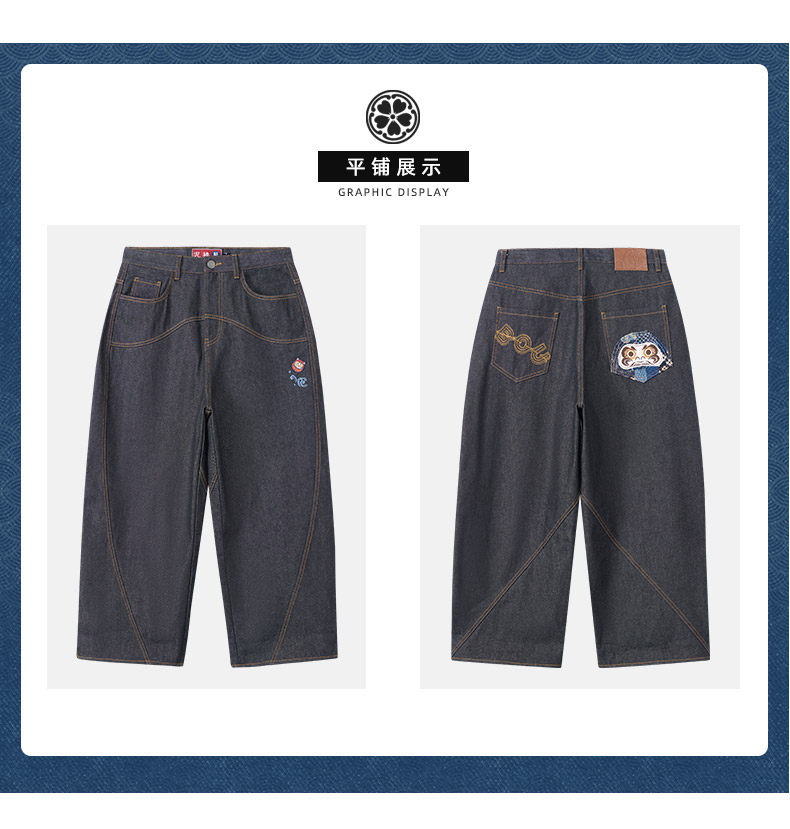 ONIARAI/鬼洗26春季棒系列复古花布达摩弧形分割牛仔裤男 26N4403