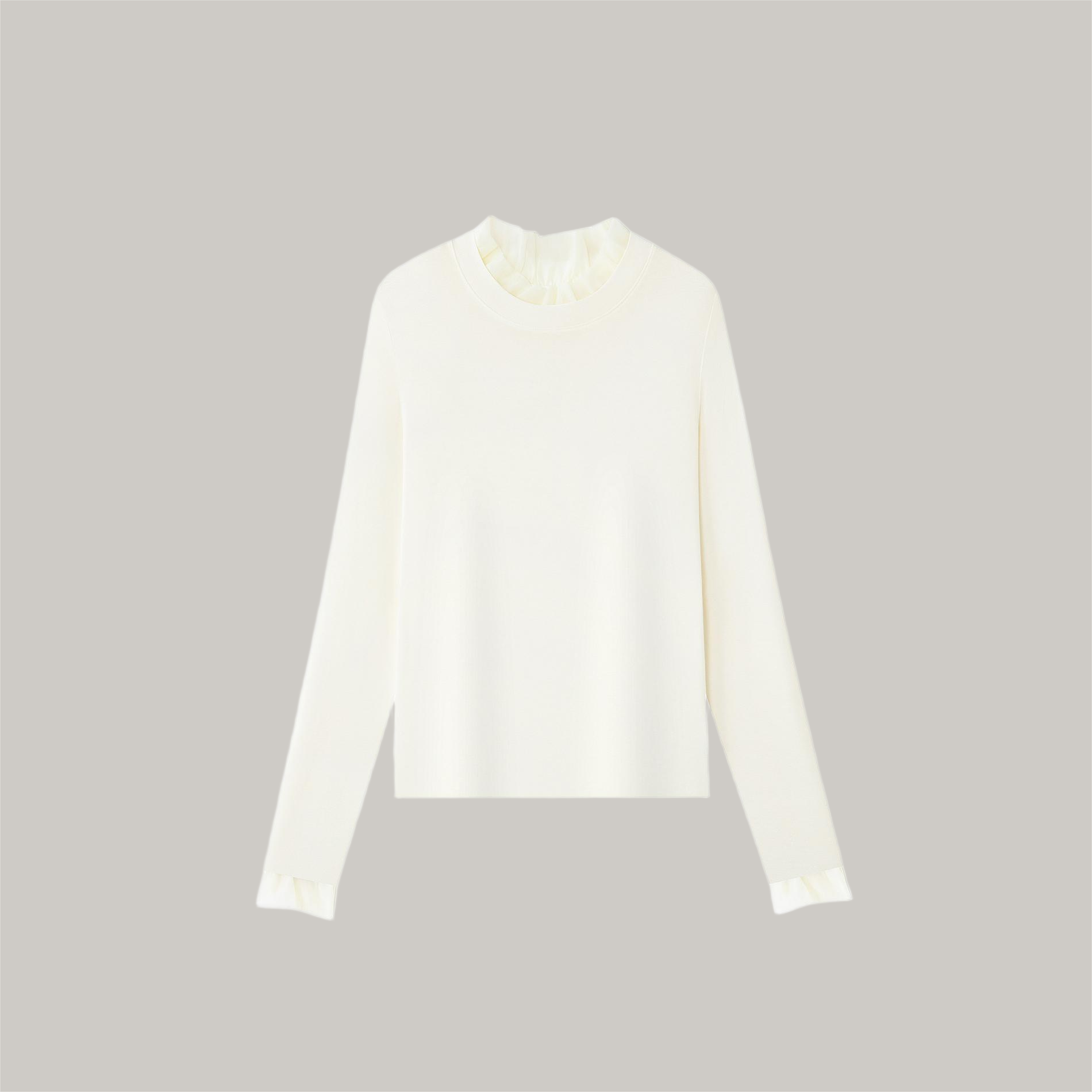 女士拼接荷叶领百搭打底衫T恤女打底衣内搭【FF25809】