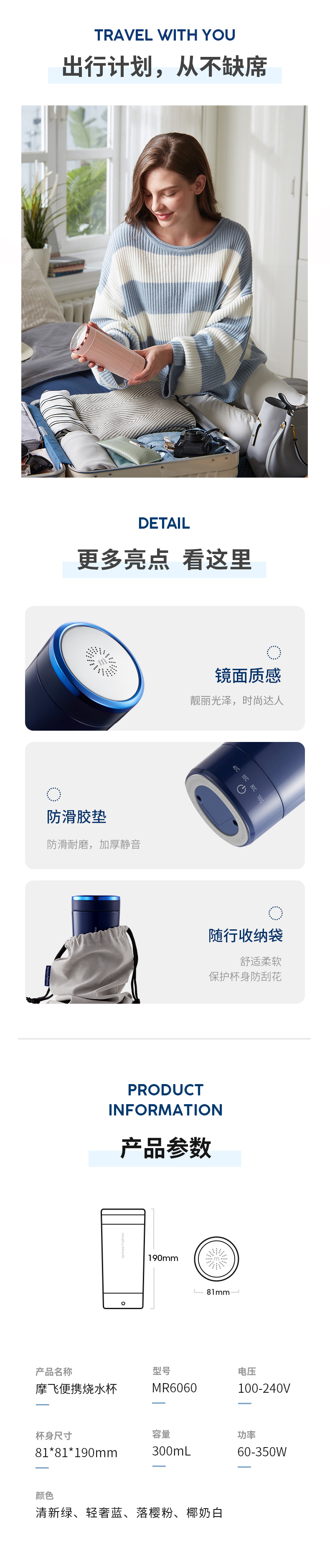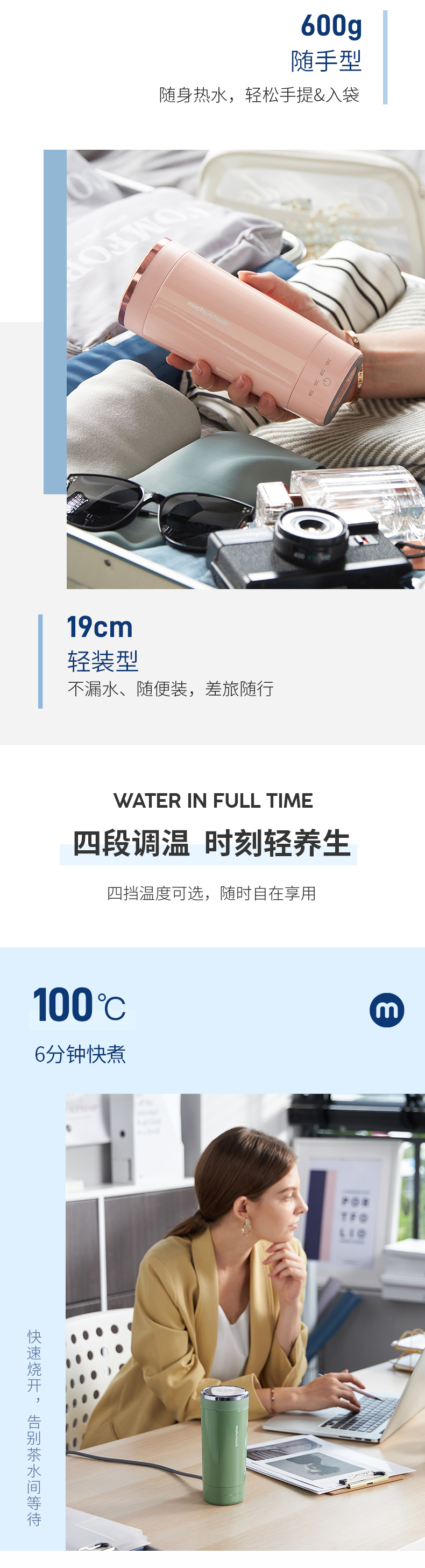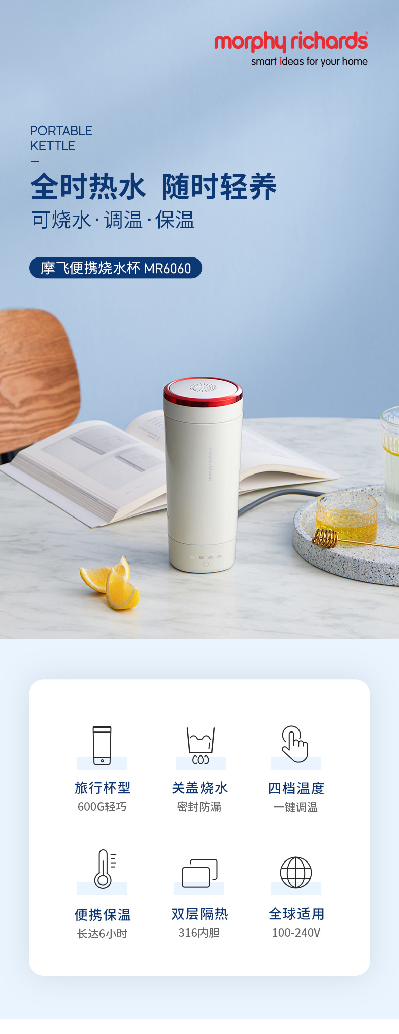 摩飞烧水杯电热水杯小型便携式旅行加热杯办公室水杯桌面保温杯MR6060觅食