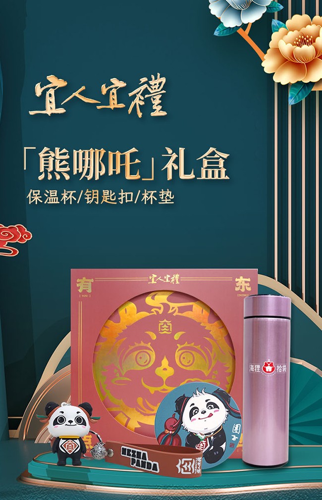 宜人宜礼-熊哪吒文创礼盒 扣垫杯三件套