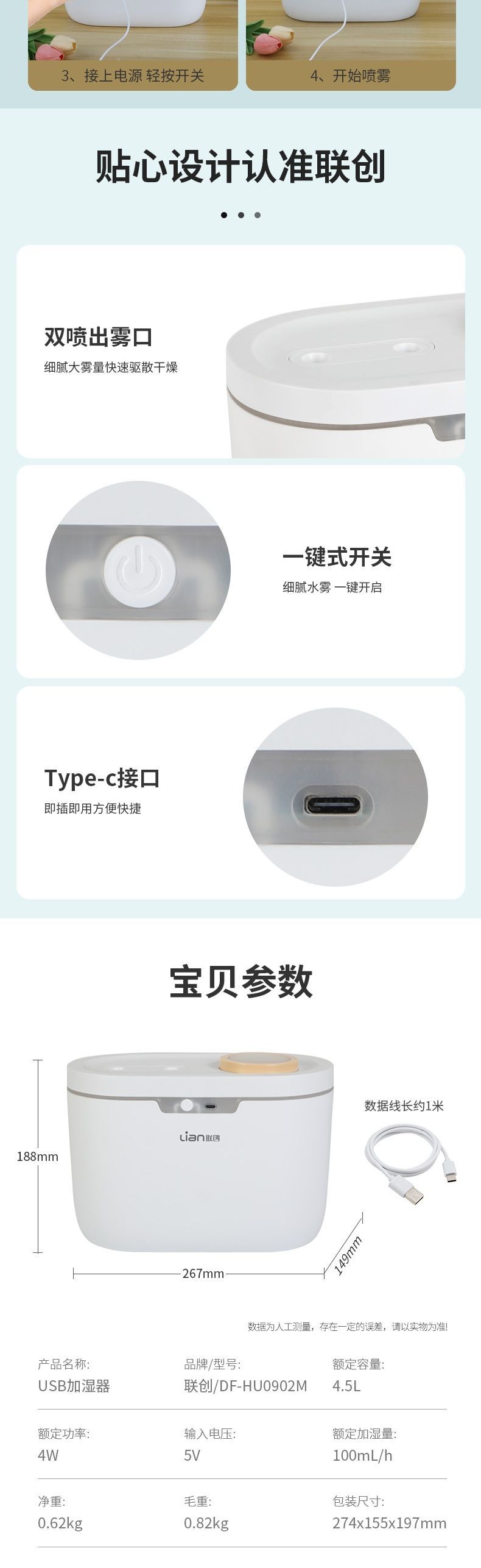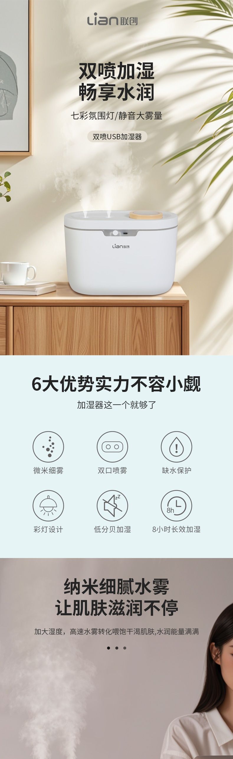 联创 双喷加湿器 DF-HU0902M 双口喷雾加湿器家用大容量