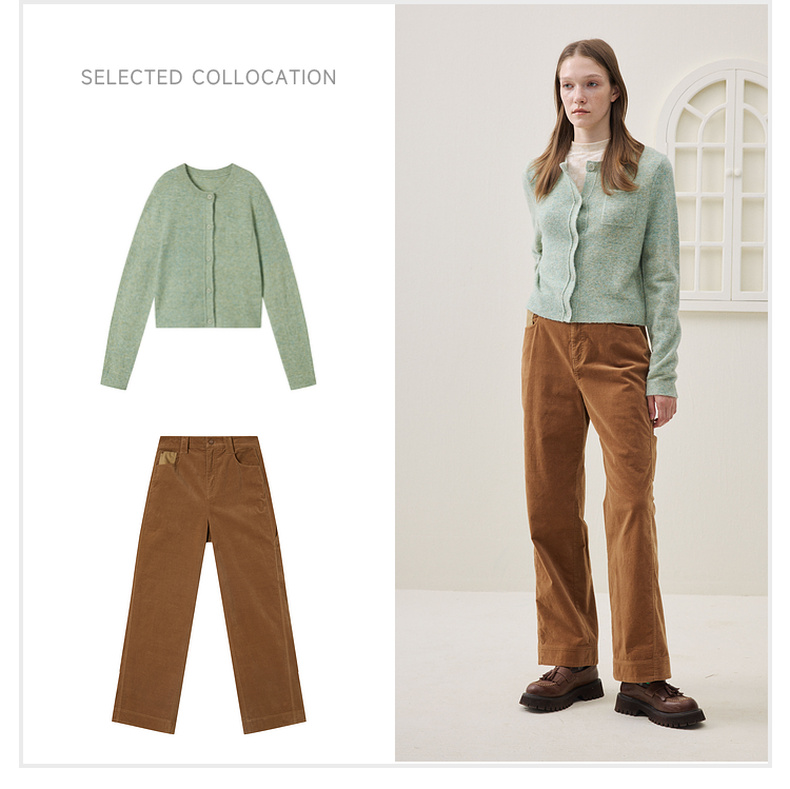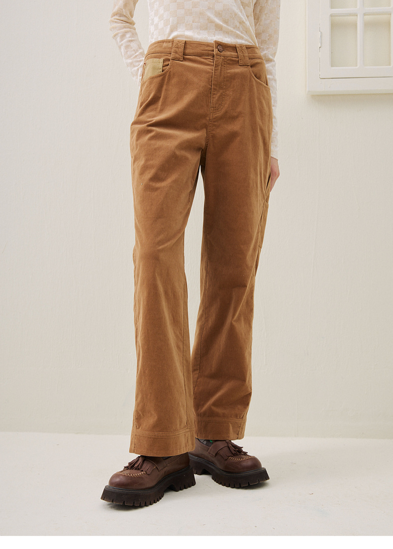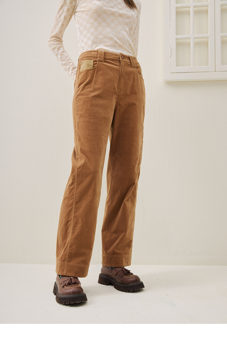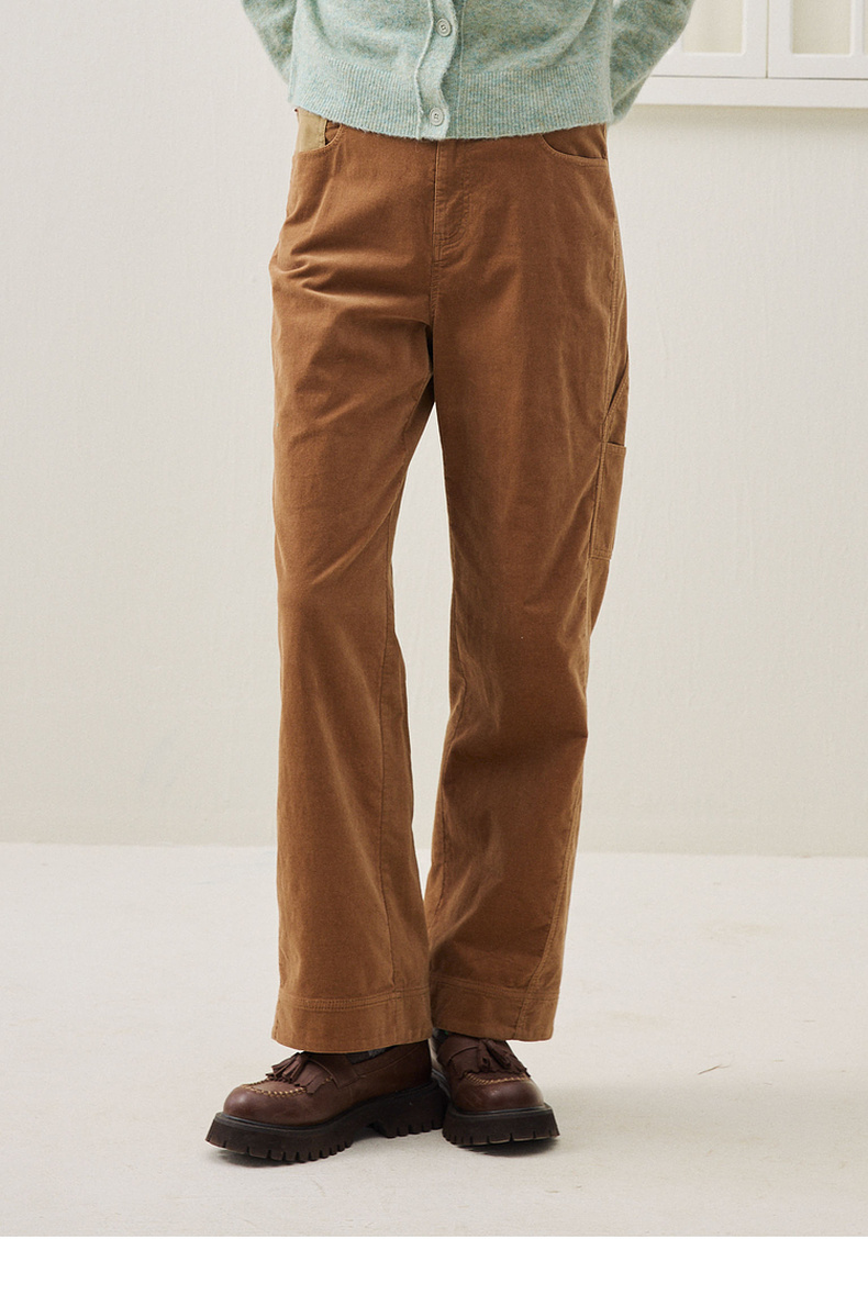 谜底直筒裤长裤2025年冬季新品长复古拼接不对称口袋女254MK1644