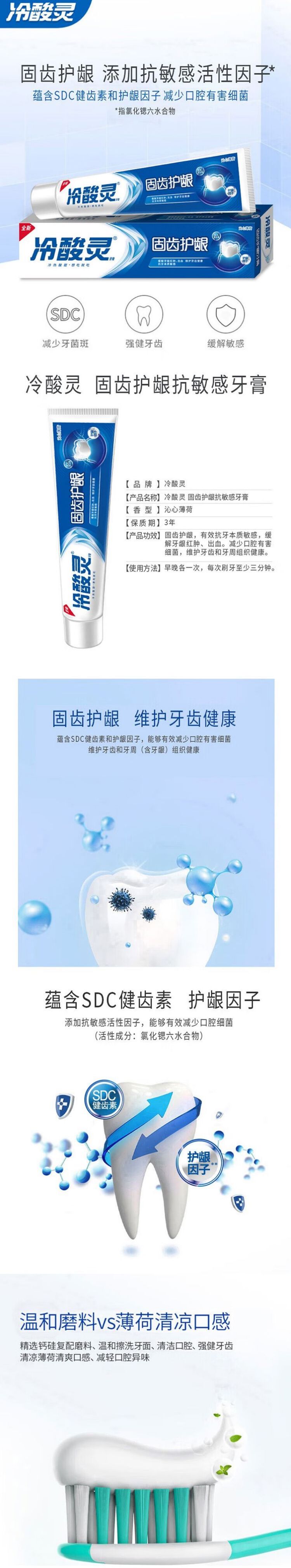 冷酸灵清火抗敏牙膏 固齿护龈抗敏感牙膏 美白抗敏牙膏 海盐沁爽牙膏